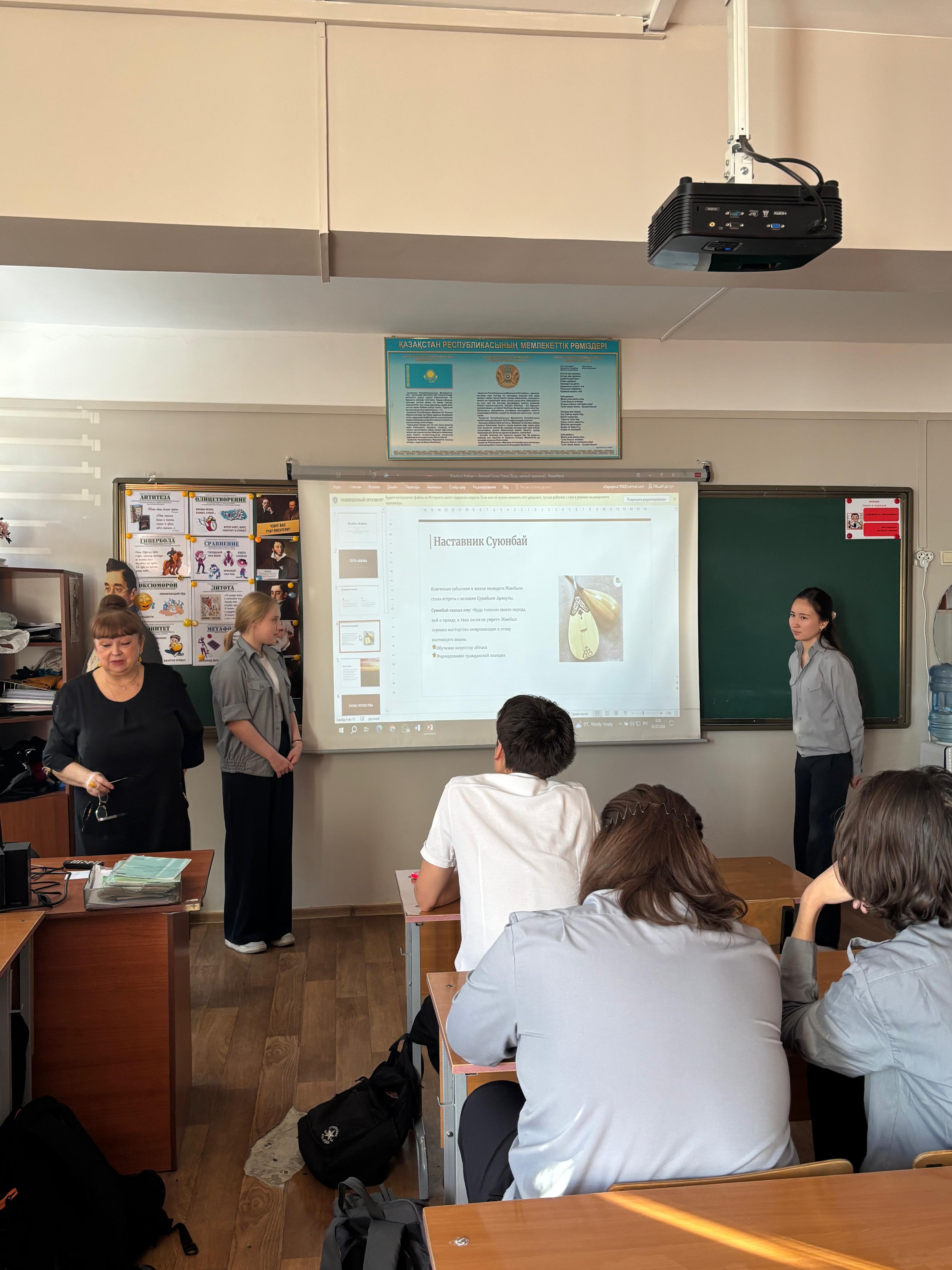 28 ақпан күні ұлы ақын, жыр алыбы, қазақ поэзиясының классигі Жамбыл Жабаевтың (1846–1945) туғанына 180 жыл толуына орай сынып сағаты өткізілді. Сынып сағаты барысында оқушылар Жамбыл Жабаевтың өмірі мен шығармашылық жолымен танысып, оның өлеңдері мен жырлары арқылы ұлттық рух пен адамгершілік құндылықтардың маңызын түсінді.