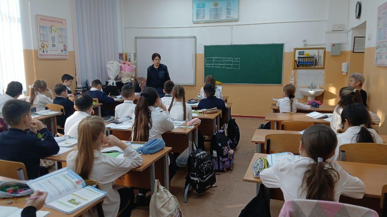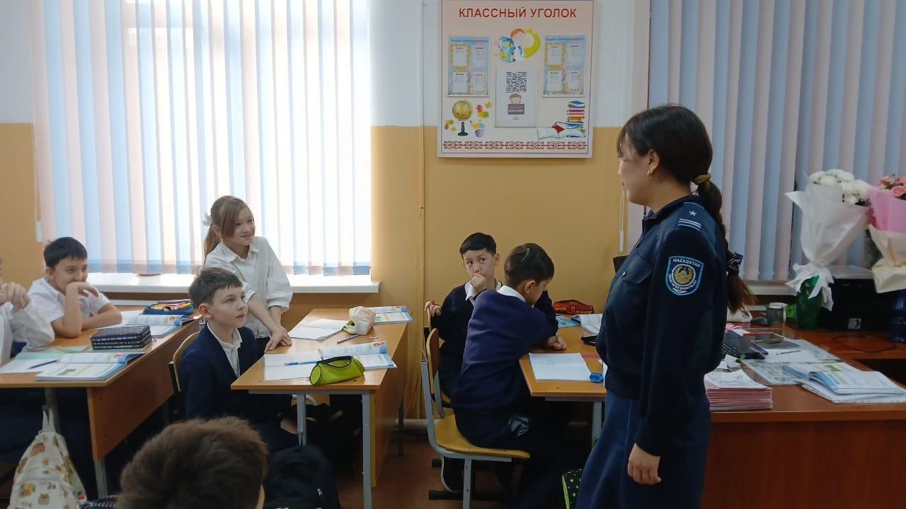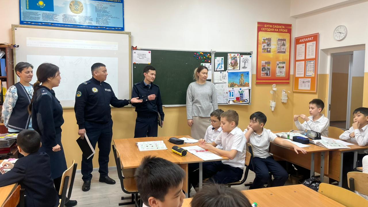 Оқушыларға қауіпсіздік, бір-біріне құрмет көрсету, құқық бұзушылықтардың салдары туралы ақпарат берілді. Мұндай кездесулер балалардың құқықтық сауаттылығын арттырып, жағымды мінез-құлық пен жауапкершілік сезімін қалыптастыруға көмектеседі.