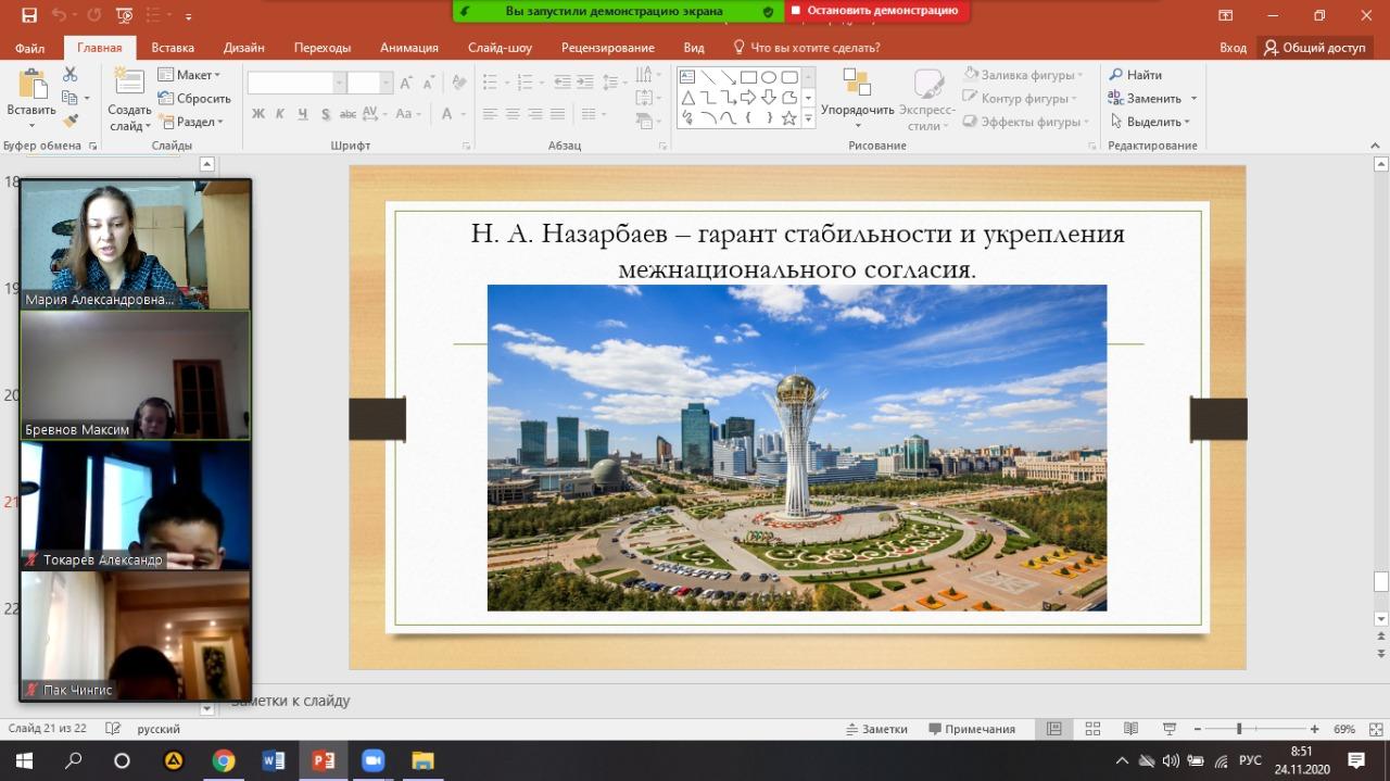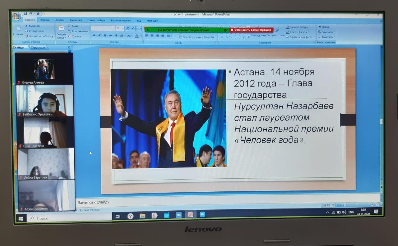 24 ноября в КГУ "Школа-лицей №28 им М.Маметовой" с 1-11 класс состоялись классные часы: "Роль первого президента Республики Казахстан"