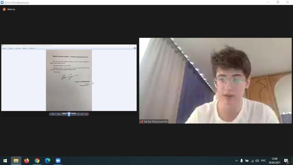 Ежегодно в нашем лицее проводится конкурс «Олжасовские чтения». В этом году в связи с пандемией конкурс прошел дистаннционно, что позволило провести его в Международном формате под названием «Есть в мире сердце, где живу я…», в трех номициях: