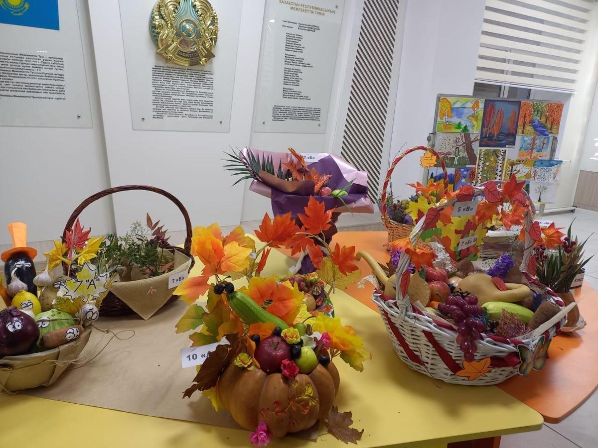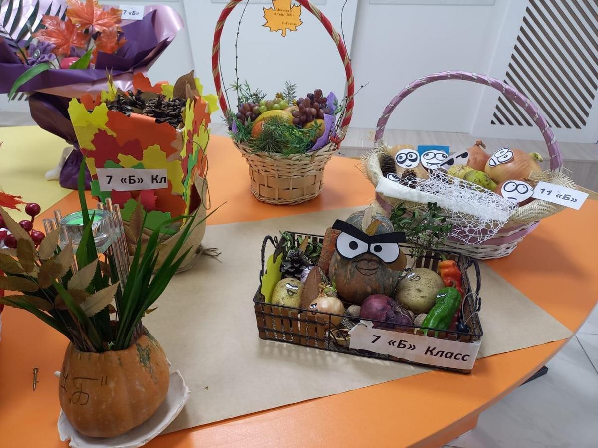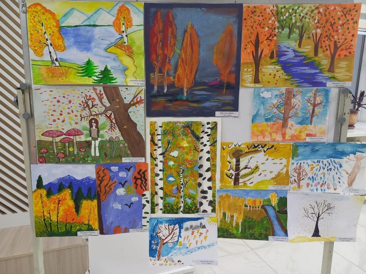 1-4 классы рисовали «Осень», 5-7 классы подготовили «Осенний букет» или «Дары осени», 8-11 классы «Осеннюю экспозицию».