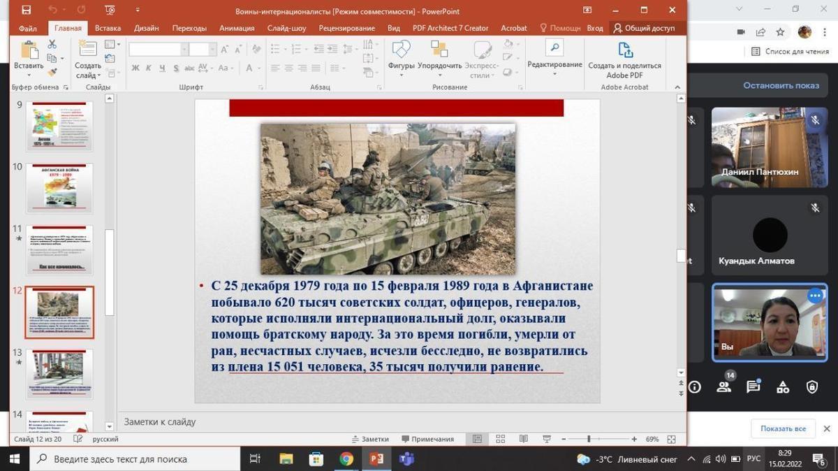 3) воспитывать уважение к подвигу воинов – интернационалистов.