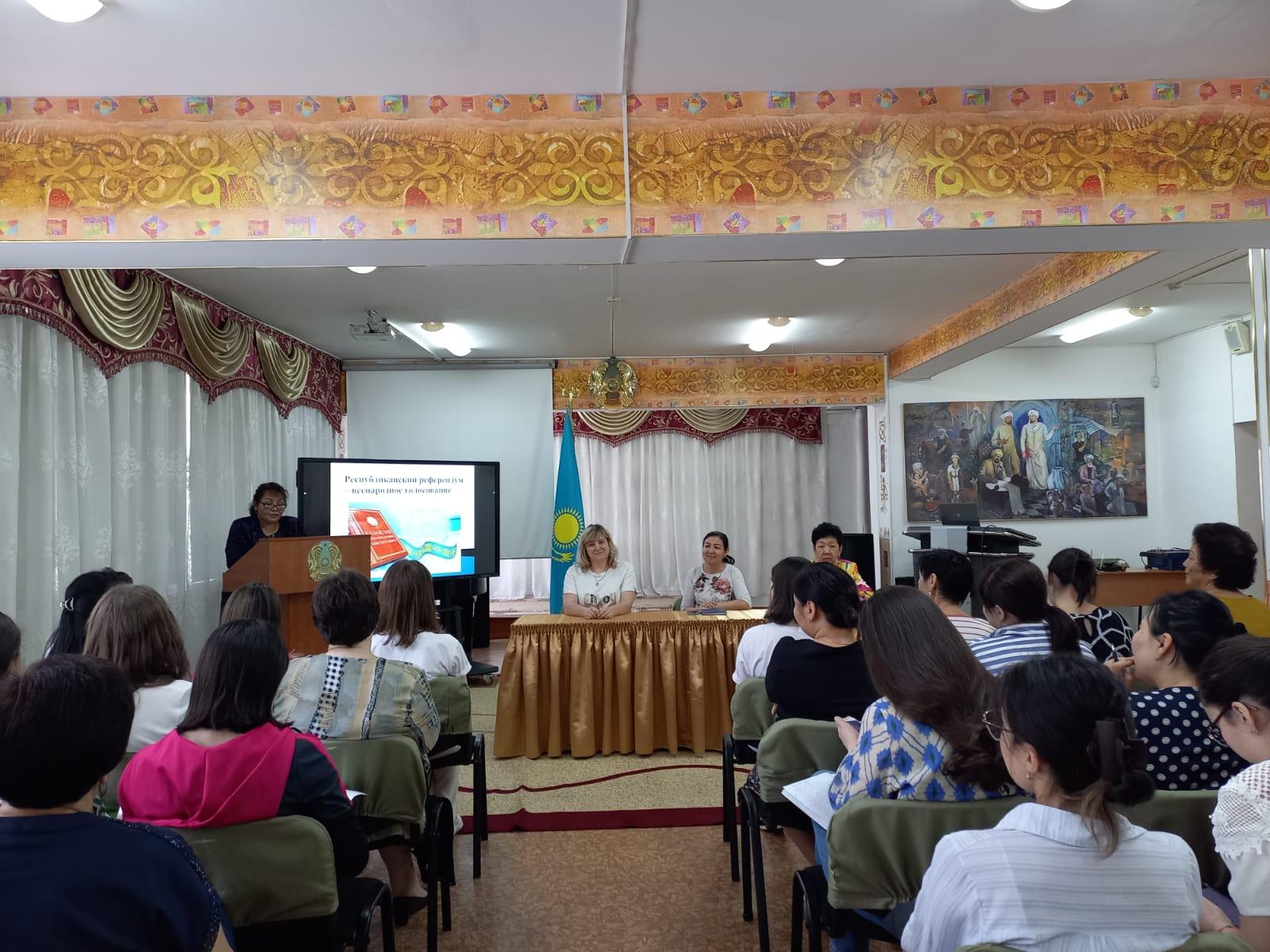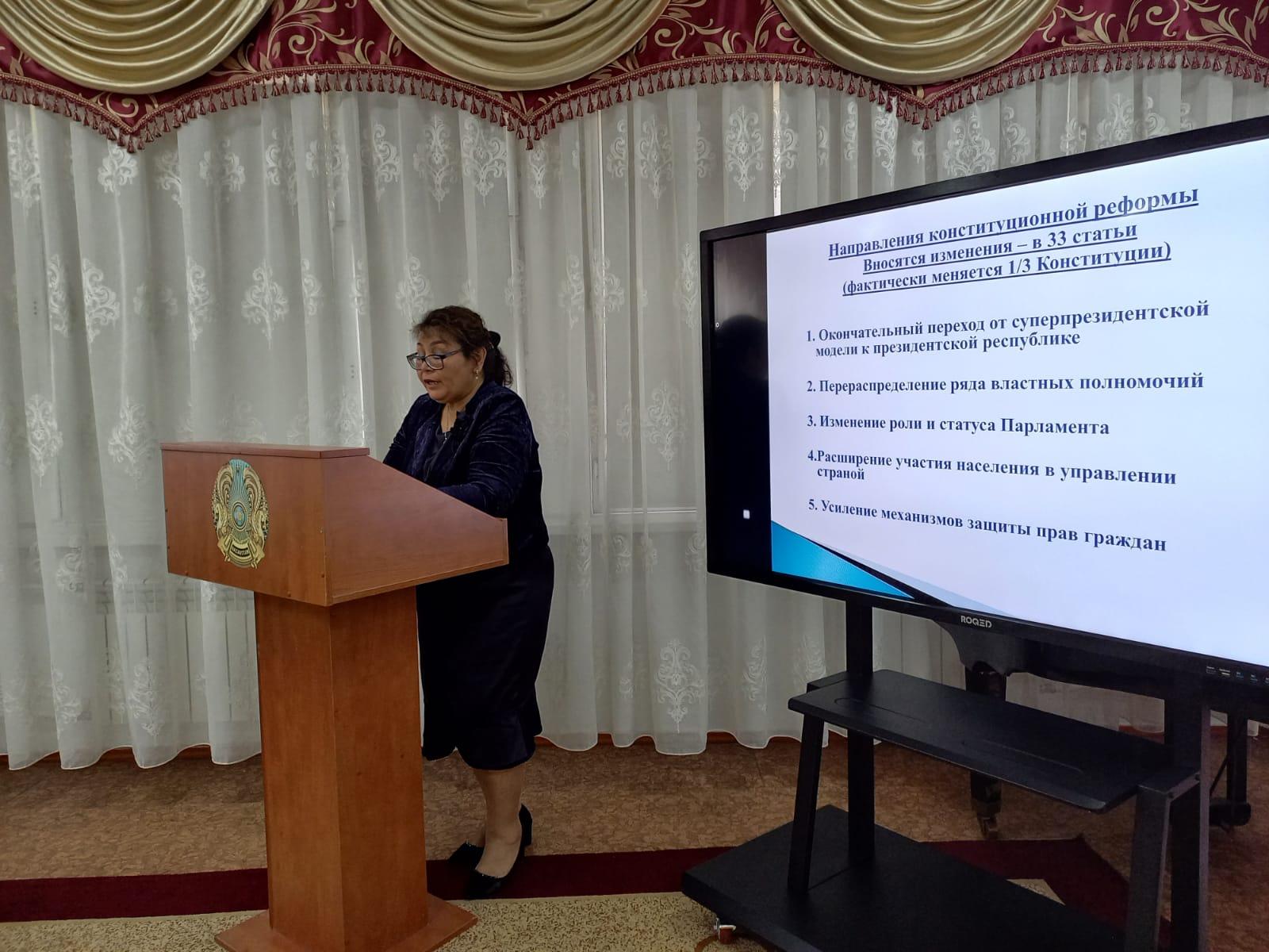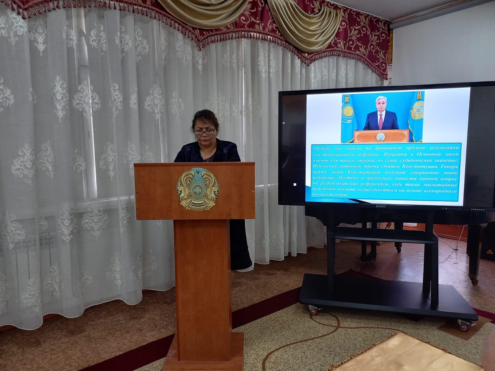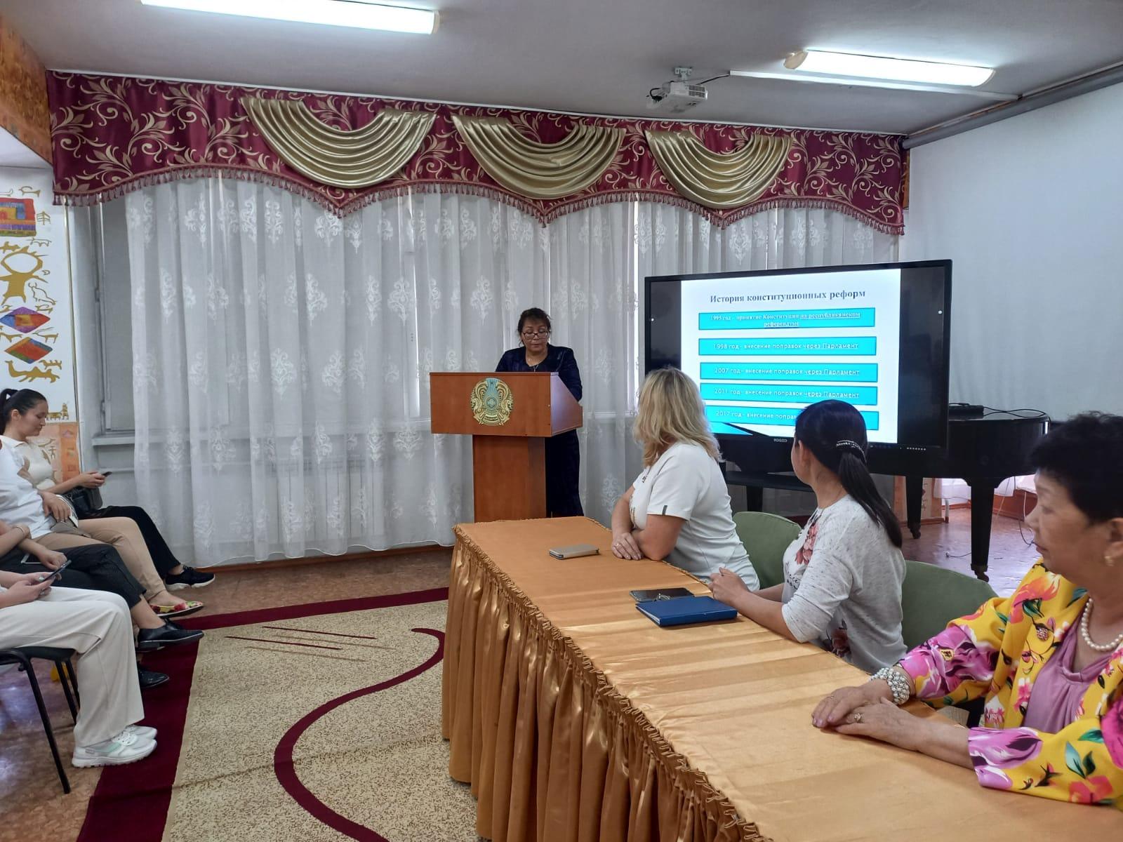 26 мая, в школе-лицей №28 им. М.Маметовой, прошло обсуждение Конституционной реформы с коллективом. С информацией о изменениях выступила учитель истории Берлибаева А.Е. Коллектив ознакомили с изменениями, которые будут вносится в Конституцию путём голосования.