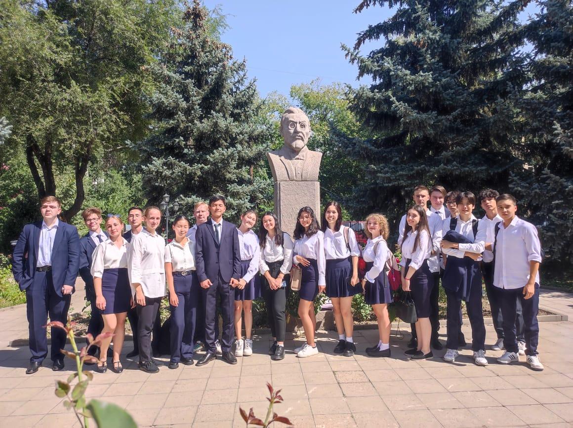 Тіл білімінің атасы - Ахмет Байтұрсынұлының 150 жылдығына орай ұйымдастырылған мектепішілік іс-шара аясында лицейіміздің 11 «А» сынып оқушылары қазақ тілі мен әдебиеті пәнінің мұғалімі Г.А. Кайыповамен ұлт ұстазының мұражайына, ескерткішіне, саябағына барып, сырттай саяхат сабағын өтті. Педагог- ғалымның мұражай-үйі қоғам қайраткері, ақын, ғалым Ахмет Байтұрсынұлының өмірі мен шығармашалық жолына арналған, мәдени-ғылыми мекенжай. Мұражай Алматы қаласындағы А.Байтұрсынов пен Жамбыл көшелерінің қиылысында орналасқан. Бұл үйде Байтұрсынұлы 1934 жылдан бастап тұрған. Мемлекеттік деңгейде құрылған арнаулы комиссия шешімімен мұражай-үй бұрынғы қалпына келтірілген.