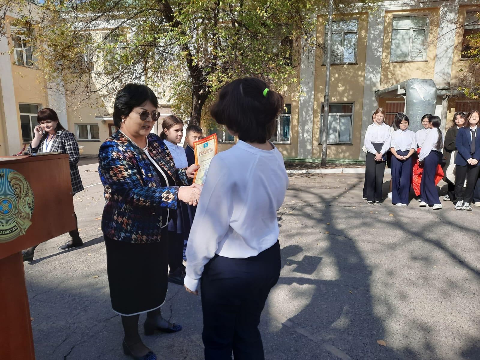 В КГУ «Школа-лицей №28 им.М.Маметовой» прошла торжественная линейка, где чествовали отличников учебы, а также прозвучал гимн Республики Казахстан. Данное мероприятие очень важно проводить среди молодого поколения, ведь это помогает привить чувство патриотизма и напомнить о важных событиях в истории страны.