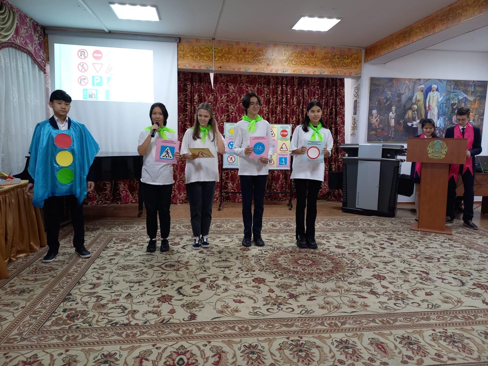 "Жаяу жүргіншілер" мерекесін өткізуге 8 "А", 8 "Б", 8 "В" сыныбы белсенді қатысты, олар ЖЖИ мүшелері болып табылады. Бірінші сынып оқушылары тәртіпті жаяу жүргіншінің алғашқы емтиханын "өте жақсы" тапсырды және іс-шара соңында әрқайсысына "жас жаяу жүргіншінің куәлігі"табыс етілді.