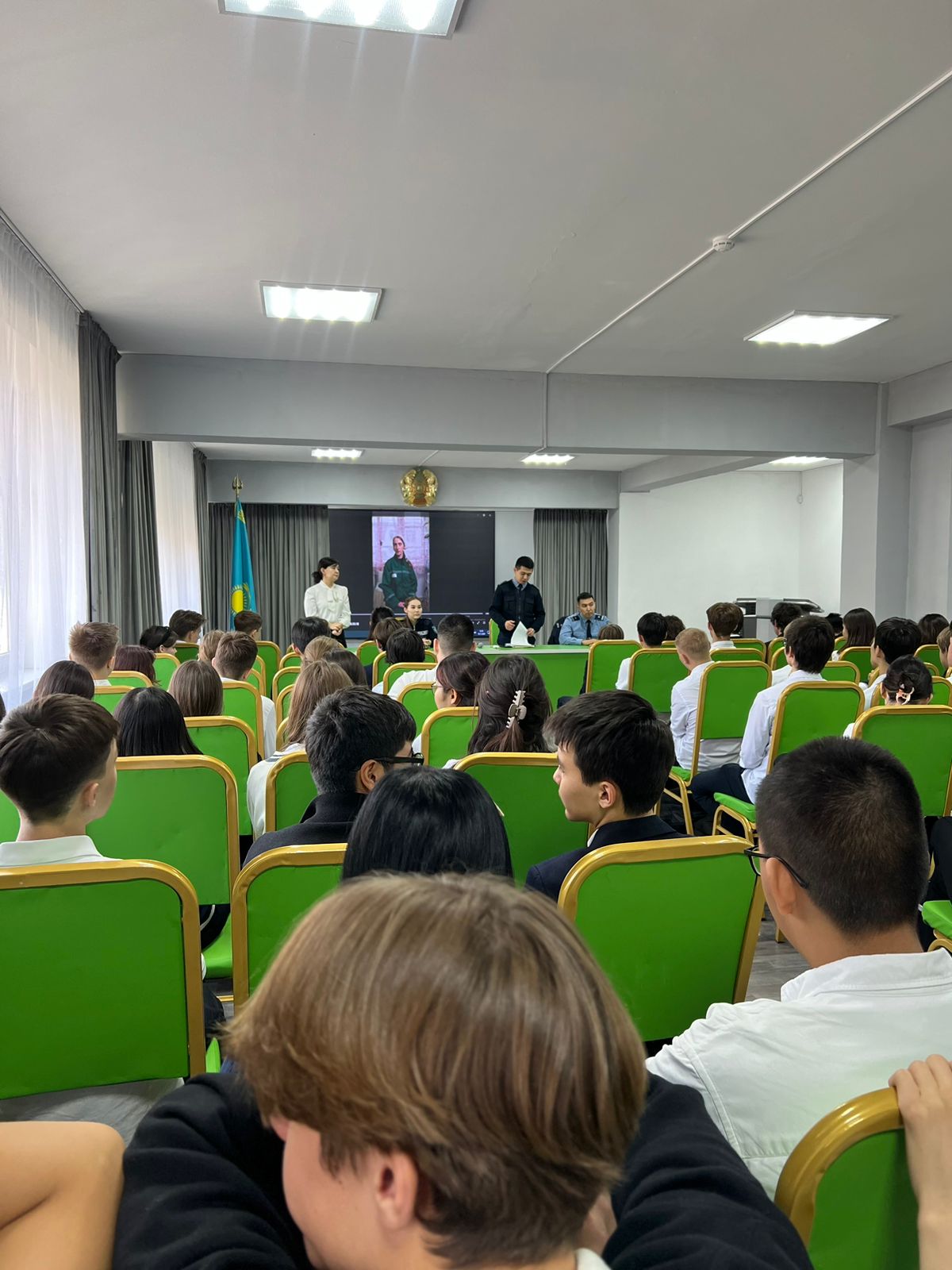 Лекция барысында оқушыларға заңға бағынатын мінез-құлықты қалыптастыру, өз әрекеттері үшін жауапкершілік сезімін тәрбиелеу туралы кеңінен ақпарат берілді.