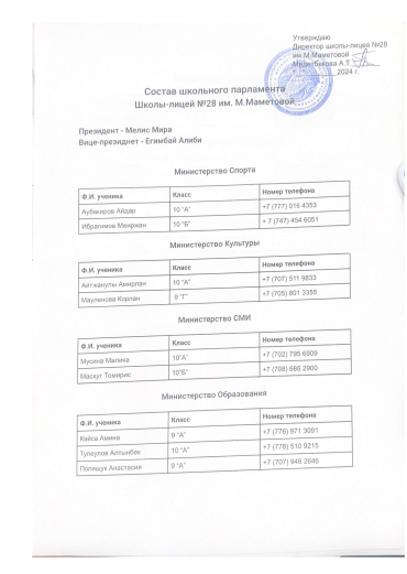» Мектеп Парламентінің құрамы/Состав школьного Парламента