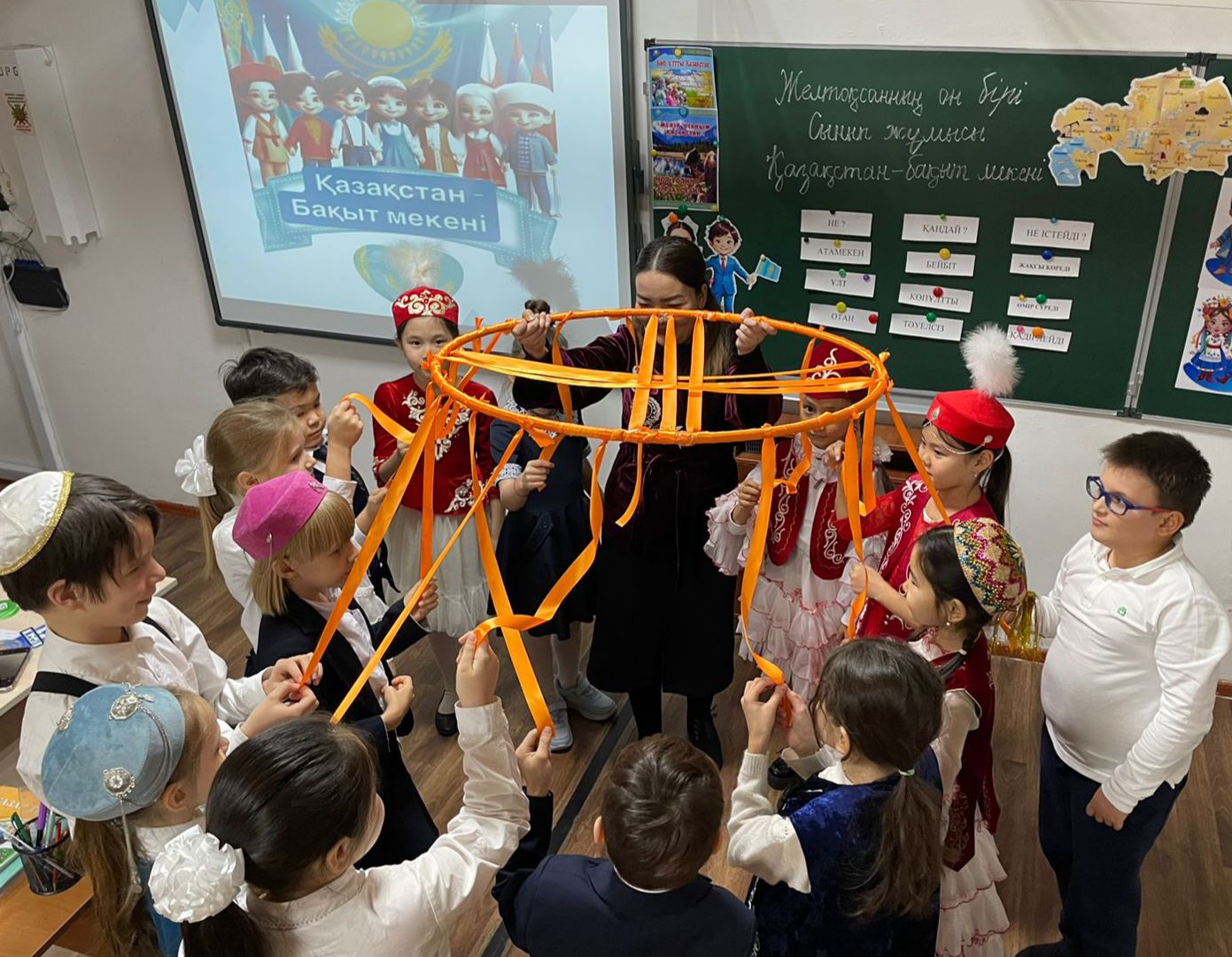 “Қазақ тілі мен әдебиеті” кафедрасының онкүндігі аясында желтоқсанның он бірі күні 2 “В” сыныбымен қазақ тілі мен әдебиеті пәнінің мұғалімі Абдрахманова А.Б.”Қазақстан-бақыт мекені”тақырыбында ашық сабақ өтті. Сабақтың мақсаты: балалардың патриоттық сезімін ояту, Отан, Атамекен ұғымдарымен таныстыру. Ашық сабақ барысында жеке, жұптық, топтық жұмыстар орындалды. Рефлексия “ Шаңырақ “ әдісі балаларға ерекше ұнады. Сабақтың сергіту сәті “Ұлттық оюларды қайталап,биле” балаларды сергітіп алса, хормен орындалған “Атамекен” әні оқушылардың патриоттық сезімдерін оятты. 2”В” сыныбының оқушылары қазақ тілі пәнінен игерген білімдерін өте жақсы деңгейде көрсетті.
