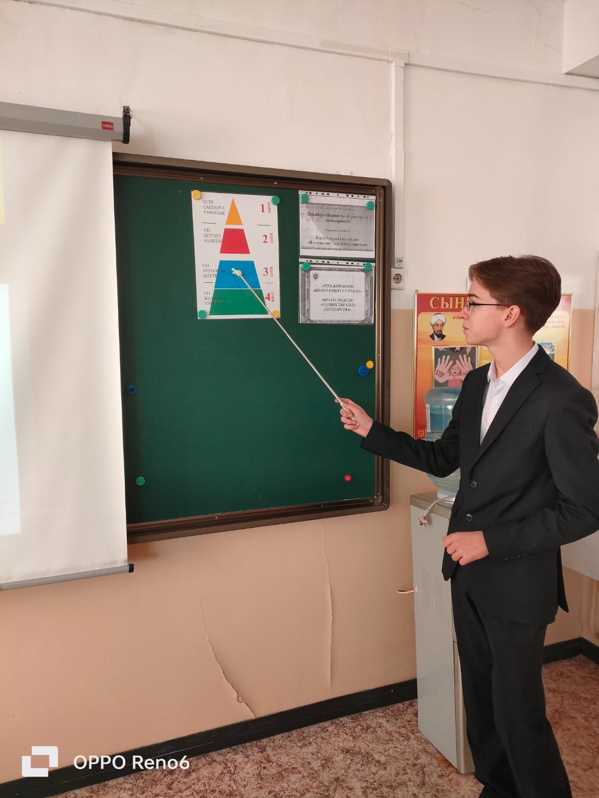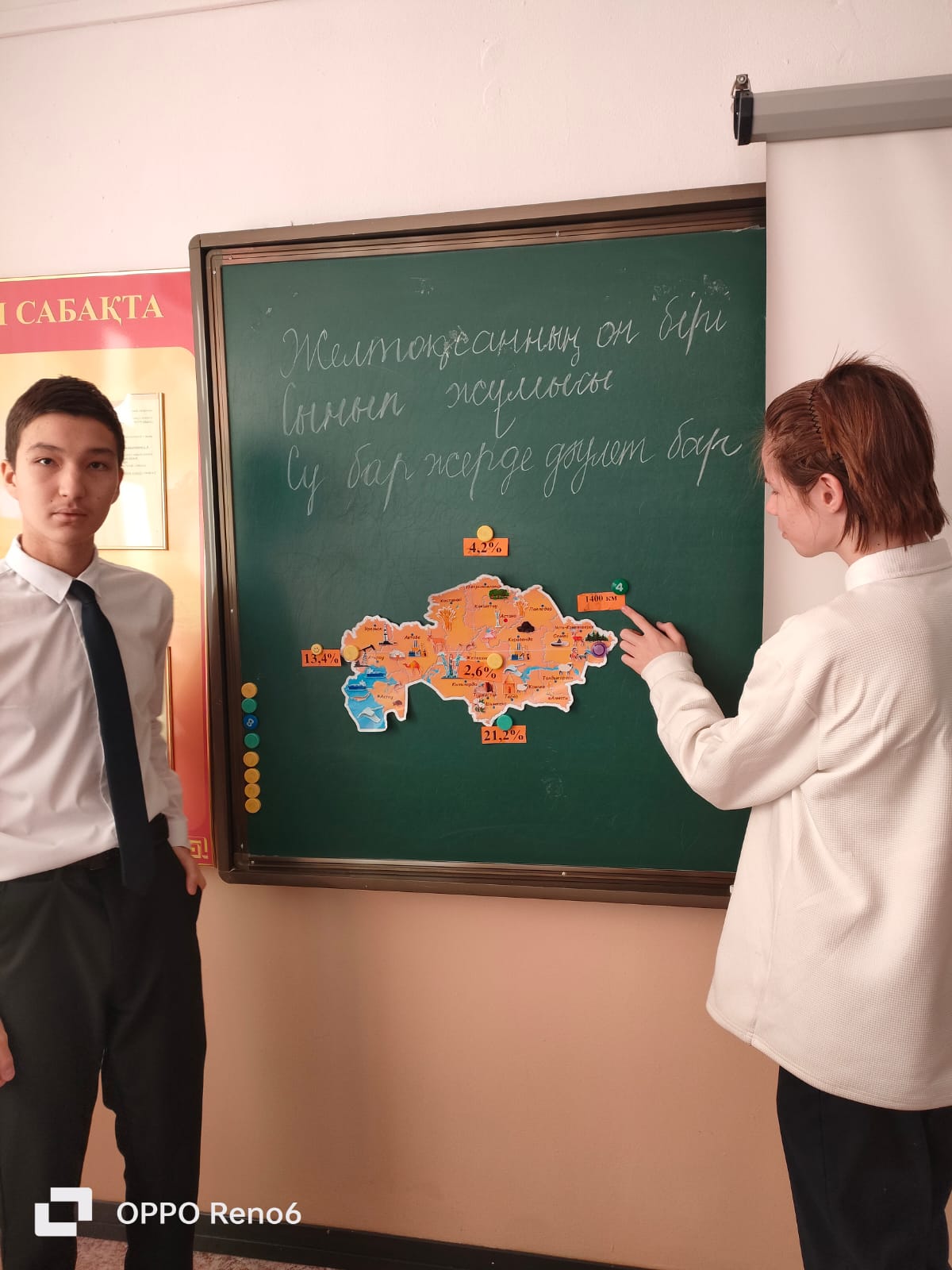 Жеке, жұптық тапсырмалар орындалды. Тақырыпты бекіту үшін "Ыстық доп" әдісі оқушыларға қызық болды. Қазақстан картасы арқылы әр аймақтың су ресурстары анықталды. Тыңдалым әрекеті жасанды интеллект арқылы жүзеге асып, оқушылар адамзатқа судың атынан хат жазды. Сергіту сәтінде су туралы жұмбақтар жасырып, оқушылар жылдам шешімін тапты. Кері байланыс "Пирамида" әдісі арқылы жүзеге асты, оқушылар тақырыпты