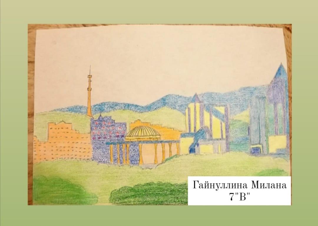 В честь празднования Дня города, в школе-лицей №28 им. М.Маметовой была организована выставка рисунков среди учащихся 1-4 и 5-7х классов.