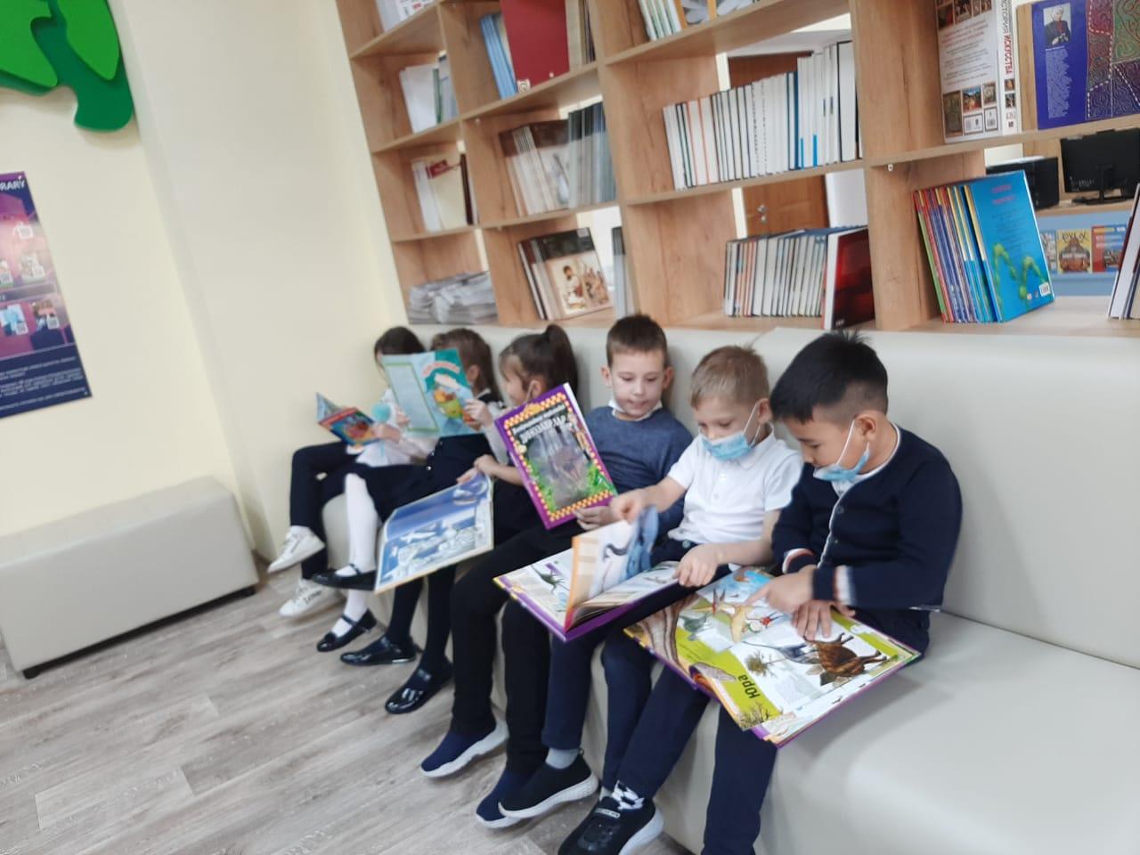 4. В воспитательных целях ознакомить детей с «Правилами поведения в библиотеке». Книжный фонд нашей библиотеки на 30% состоит из детской литературы. Здесь первоклассники могут найти много интересных сказок, познавательных энциклопедии, детских журналов и многое другое. Некоторые из художественных произведении представлены на трех языках. Для учеников оборудован уютный уголок в зоне абонемента, где можно посидеть на мягком диване и пуфиках с любимой книгой в руках.