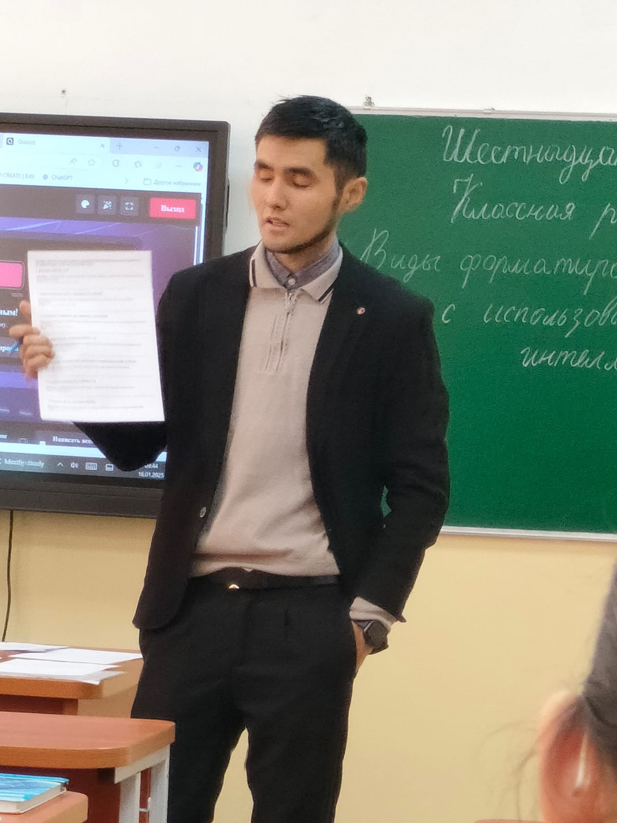 16 января 2025 года, в рамках декады математики и информатики, в школе-лицее №28 им. М.Маметовой состоялся открытый урок, который провёл учитель информатики Сатыбалдиев Айдын Еркінұлы. Урок был проведён в 10Б классе на актуальную тему: «Создание веб-страниц с использованием искусственного интеллекта». Занятие началось с обсуждения современных технологий в веб-разработке. Айдын Еркінұлы рассказал ученикам о роли искусственного интеллекта в создании адаптивных и интерактивных веб-страниц, подчеркнув, как важны знания информатики для будущих профессий в цифровом мире.Основная часть урока была посвящена практической работе. Учащиеся разделились на группы, каждая из которых работала над созданием своей веб-страницы. В процессе ребята применяли полученные знания, обучались взаимодействию с инструментами ИИ и разрабатывали дизайн и функционал своих проектов. Атмосфера в классе была творческой и насыщенной, ученики с энтузиазмом разрабатывали уникальные веб-страницы, применяя творческий подход и навыки командной работы. Этот урок стал ярким примером того, как современные технологии могут быть интегрированы в образовательный процесс, помогая учащимся развивать не только технические навыки, но и креативное мышление.