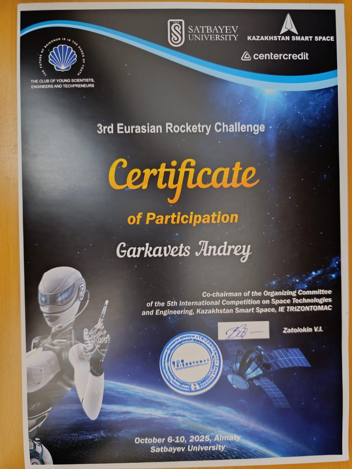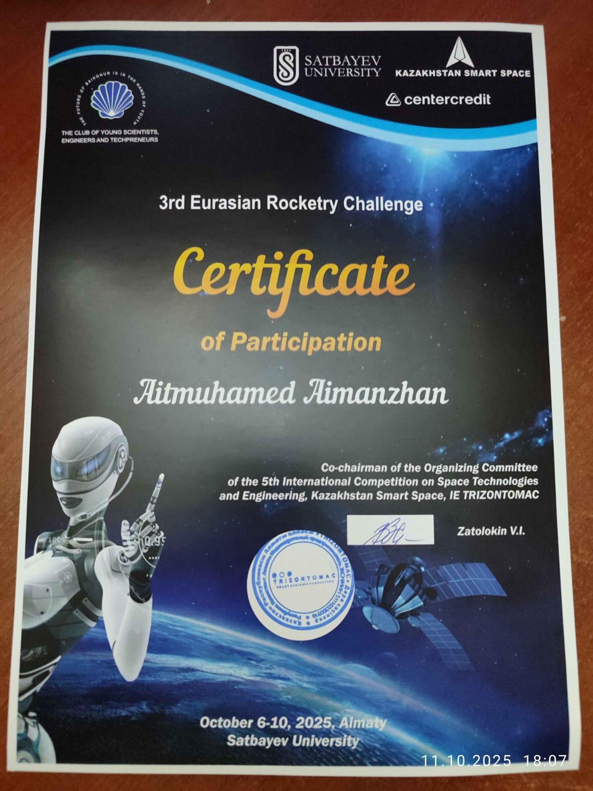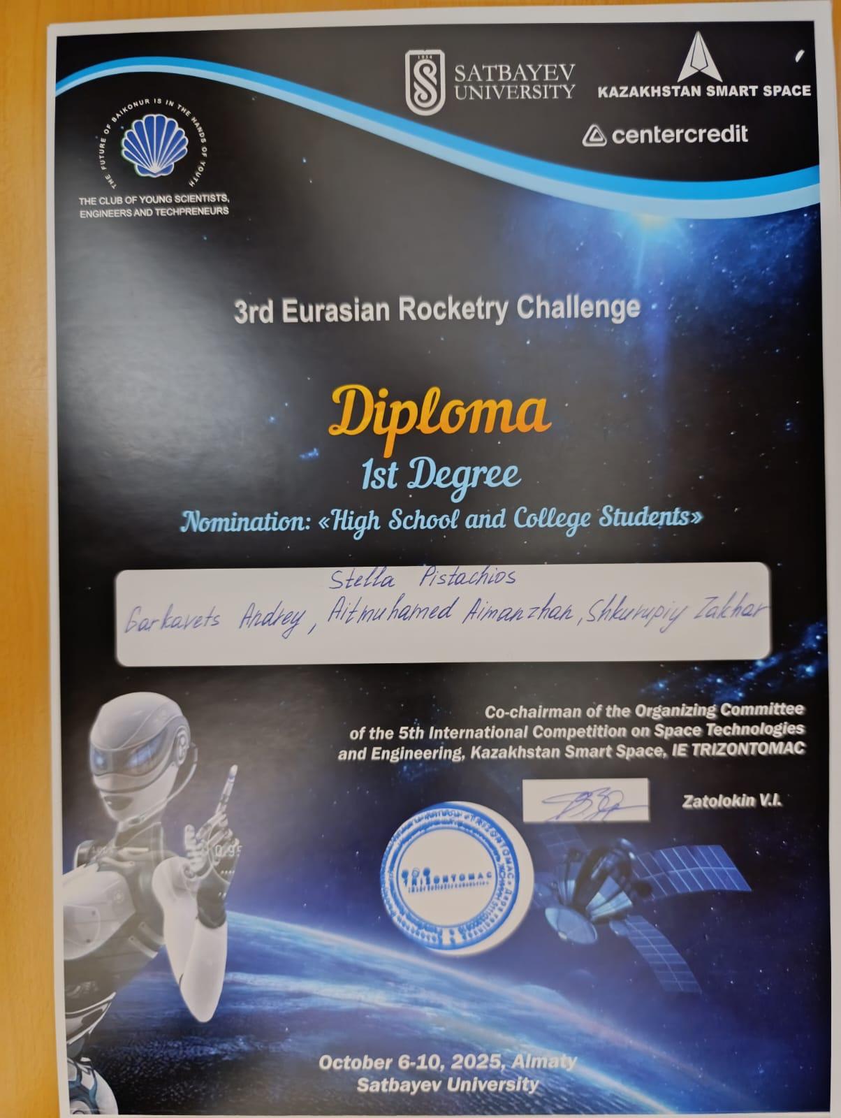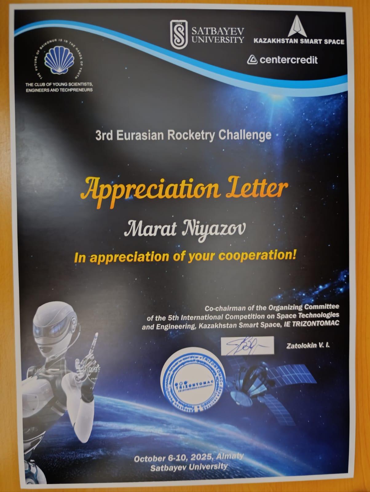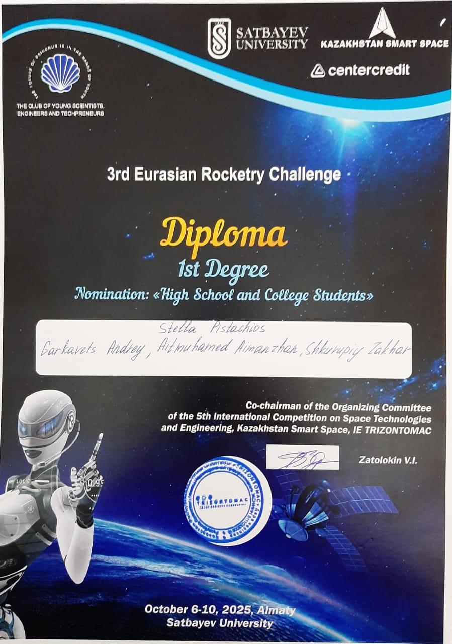 Біз Андрейді, Айманжанды және Захарды лайықты жеңісімен құттықтаймыз және оларға ғылым, инженерия және ғарыш саласында жаңа жетістіктер тілейміз!