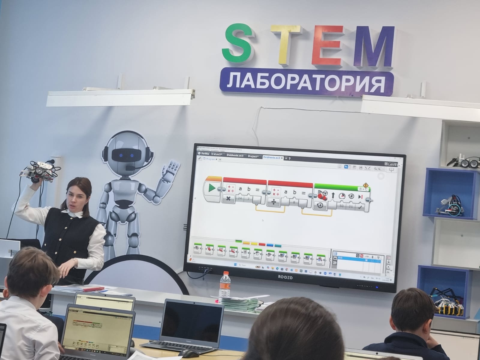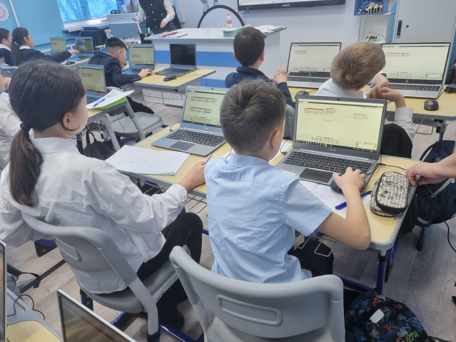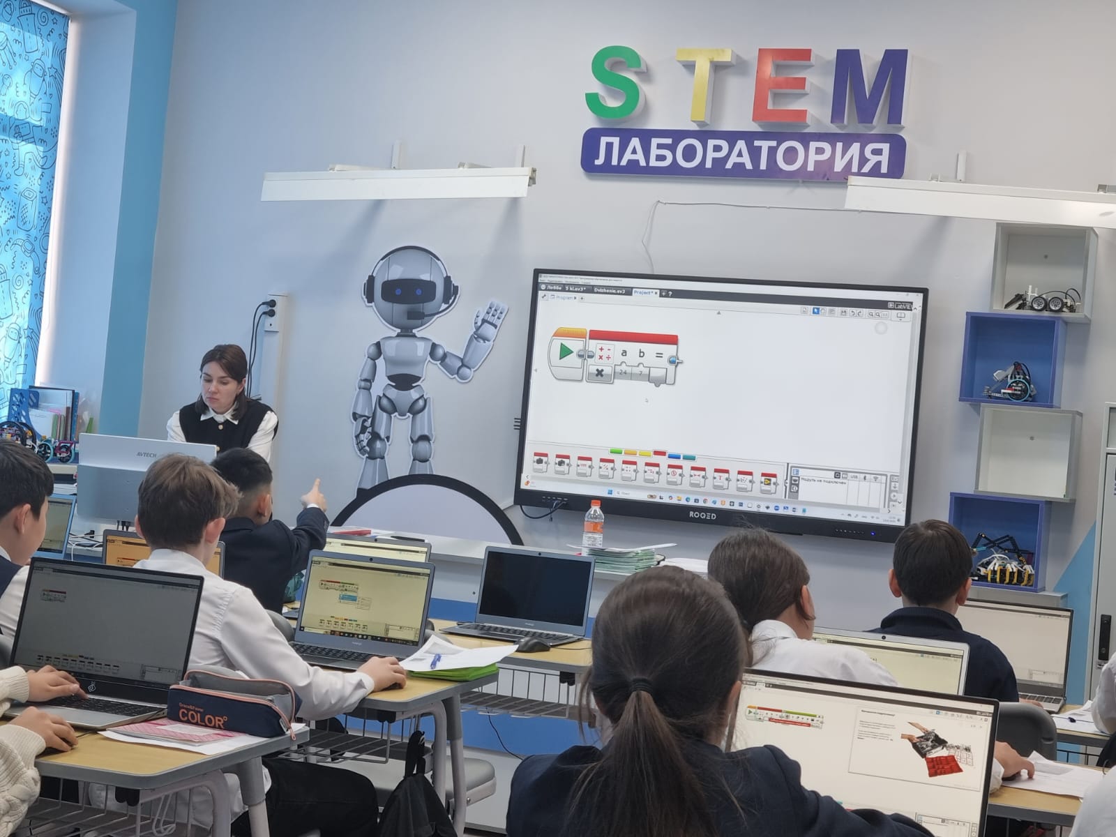 13 января, в рамках декады математики и информатики, в школе-лицее №28 им. М.Маметовой состоялся уникальный интегрированный урок, который провели учитель математики Абилкайырова Лаура Мэлсовна и учитель информатики Шалтеева Наталья Константиновна. Темой урока стали задачи на нахождение дроби от числа и числа по его дроби, которые были представлены учащимся через увлекательное сочетание математики и программирования. Ребята изучили математическую основу задач, углубились в теорию дробей и их применения, а затем с помощью учителя информатики применили полученные знания на практике. Учащимся предстояло не просто решить задачи, но и использовать их для программирования робота. Каждая группа учеников разрабатывала программу, которая позволяла роботу выполнить определённую задачу, связанную с дробями, например, пройти определённое расстояние, разделённое на доли, или выполнить заданное количество действий. Урок объединил теорию и практику, помогая учащимся увидеть, как математические знания могут применяться в реальном мире технологий. Этот интегрированный урок стал ярким примером того, как междисциплинарный подход делает обучение не только полезным, но и увлекательным. Благодарим Лауру Мэлсовну и Наталью Константиновну за их креативность и за то, что они вдохновляют ребят на изучение наук через современные технологии!