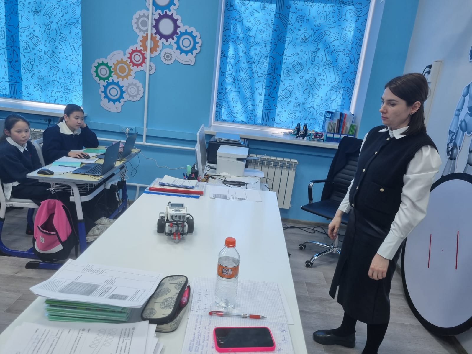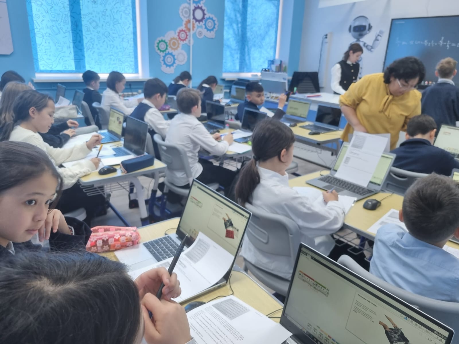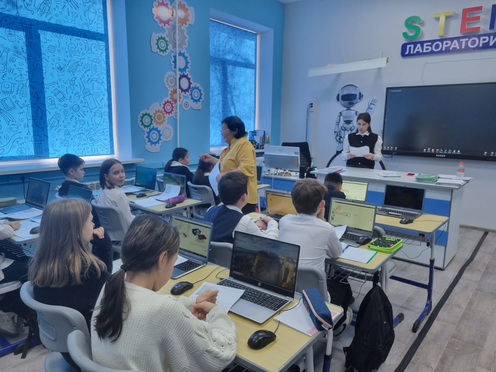 13 января, в рамках декады математики и информатики, в школе-лицее №28 им. М.Маметовой состоялся уникальный интегрированный урок, который провели учитель математики Абилкайырова Лаура Мэлсовна и учитель информатики Шалтеева Наталья Константиновна. Темой урока стали задачи на нахождение дроби от числа и числа по его дроби, которые были представлены учащимся через увлекательное сочетание математики и программирования. Ребята изучили математическую основу задач, углубились в теорию дробей и их применения, а затем с помощью учителя информатики применили полученные знания на практике. Учащимся предстояло не просто решить задачи, но и использовать их для программирования робота. Каждая группа учеников разрабатывала программу, которая позволяла роботу выполнить определённую задачу, связанную с дробями, например, пройти определённое расстояние, разделённое на доли, или выполнить заданное количество действий. Урок объединил теорию и практику, помогая учащимся увидеть, как математические знания могут применяться в реальном мире технологий. Этот интегрированный урок стал ярким примером того, как междисциплинарный подход делает обучение не только полезным, но и увлекательным. Благодарим Лауру Мэлсовну и Наталью Константиновну за их креативность и за то, что они вдохновляют ребят на изучение наук через современные технологии!