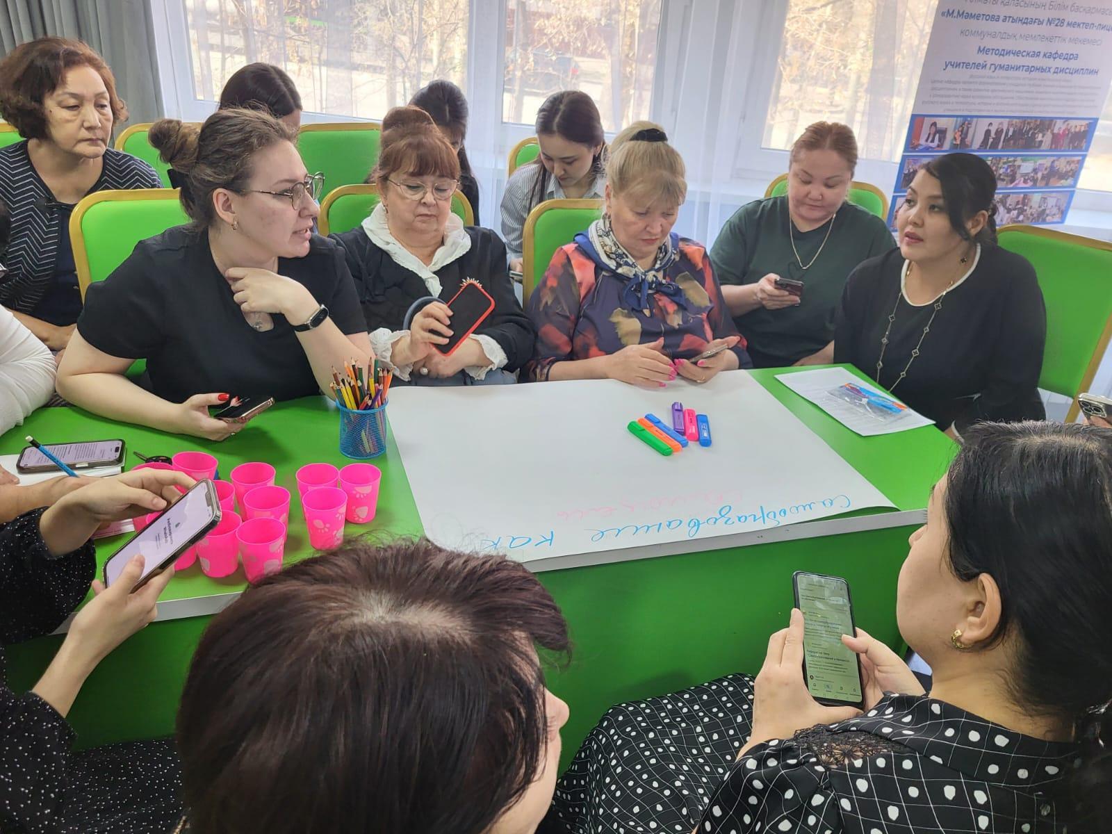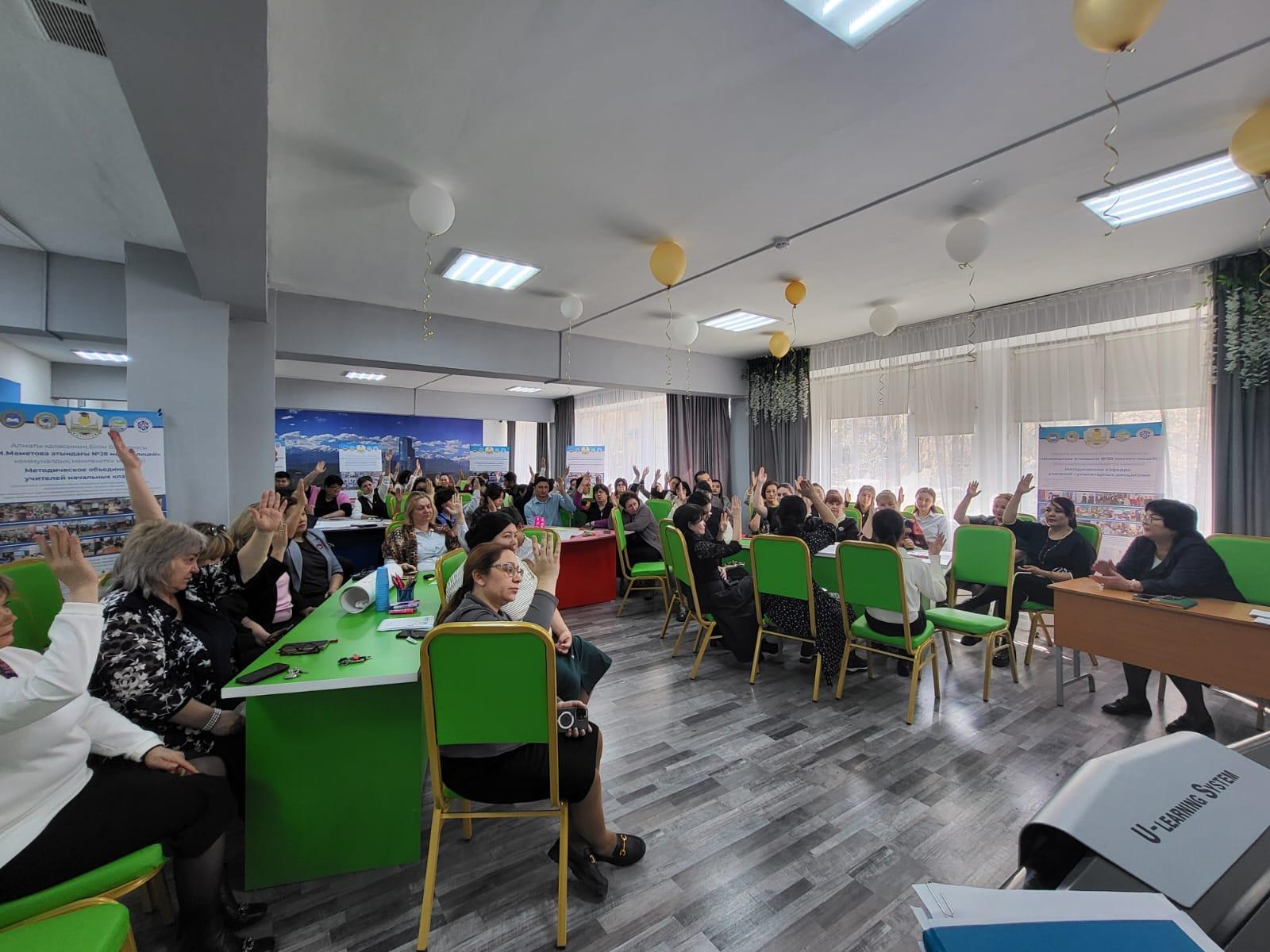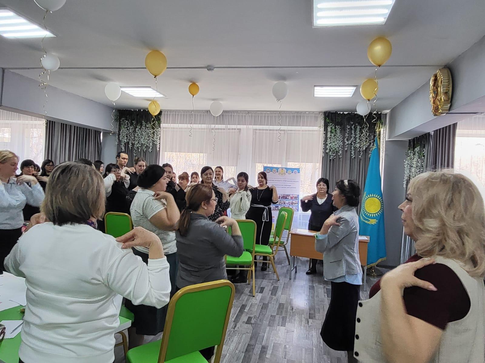 Учитель Музыки Гульжан Батыржановна рассказала о том как она работает с учащимися над развитием вокально-хоровых навыков, провела мастер класс с учителями и рассказала о том, что эти методики можно использовать для учащихся на всех уроках, если ребенок волнуется или есть дефекты в речи.