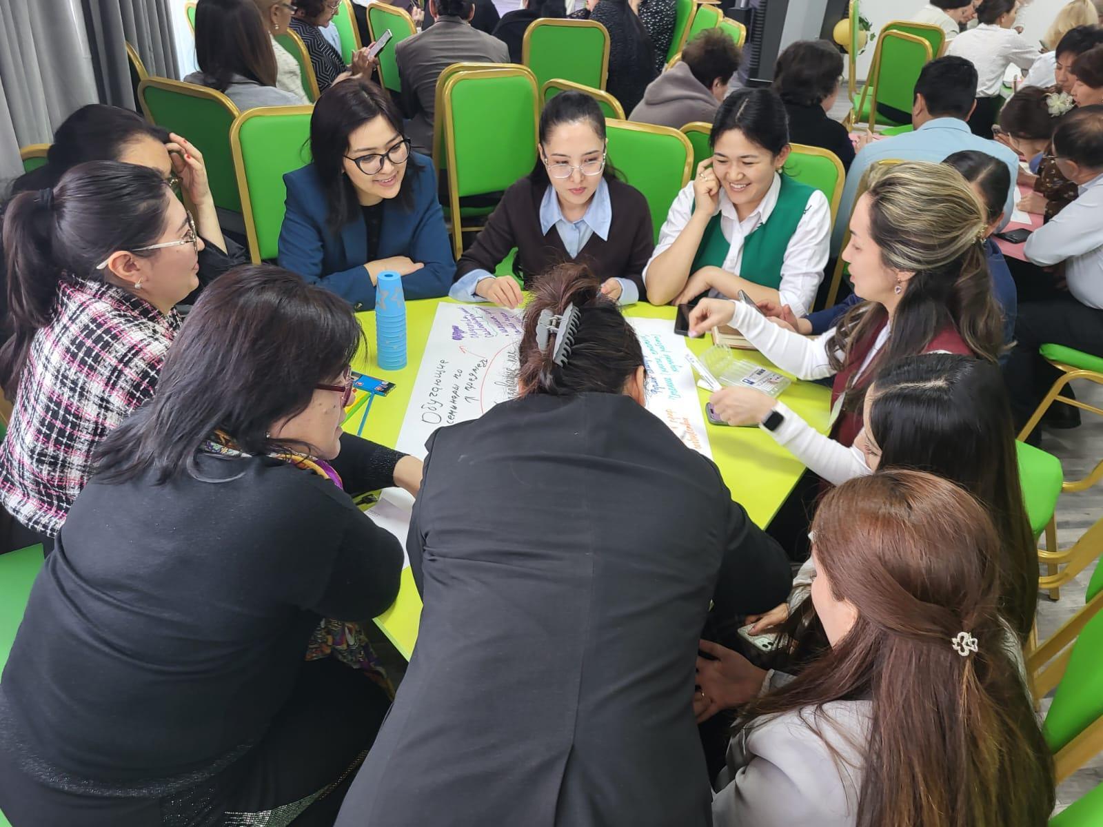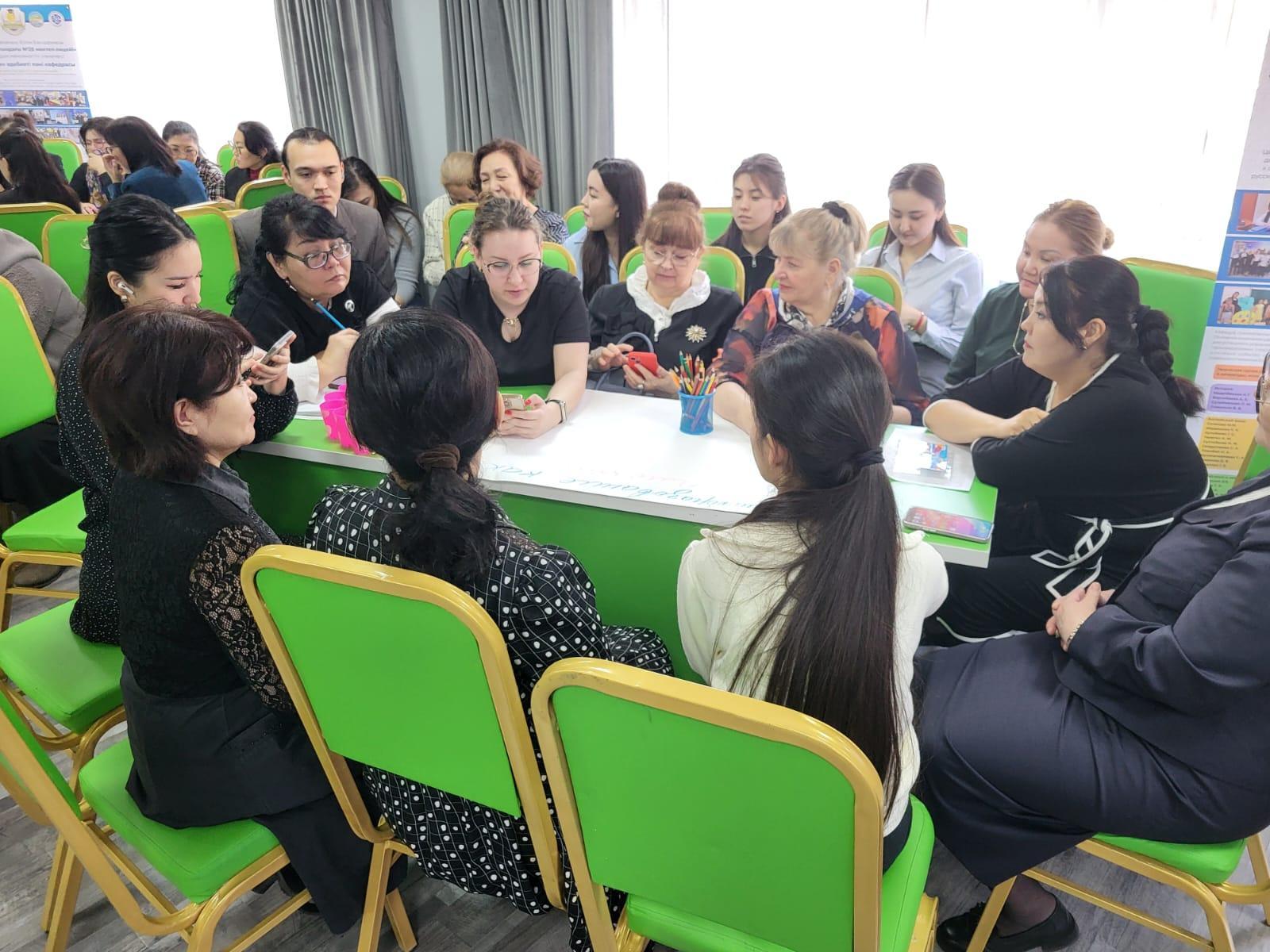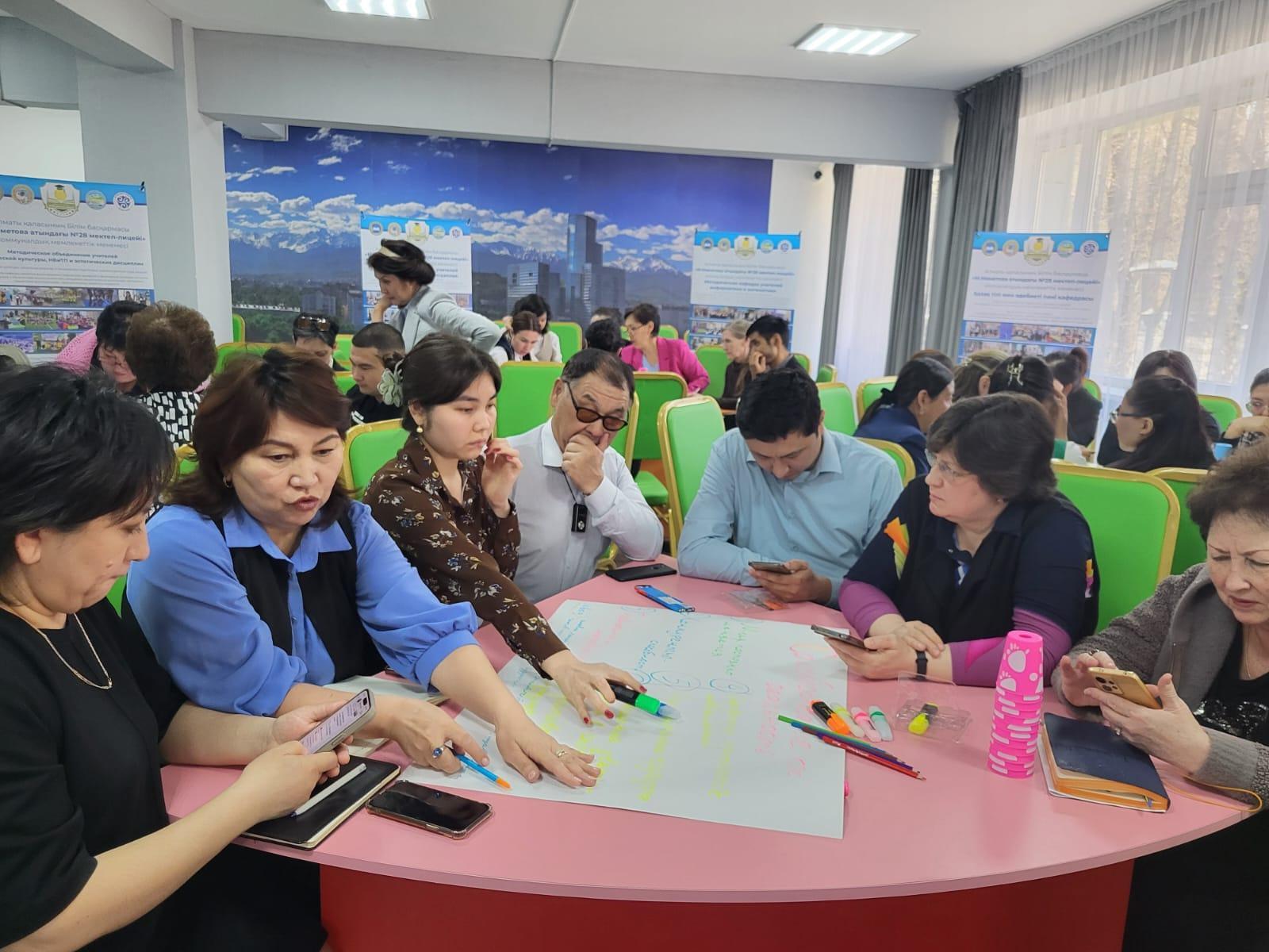 Учитель Музыки Гульжан Батыржановна рассказала о том как она работает с учащимися над развитием вокально-хоровых навыков, провела мастер класс с учителями и рассказала о том, что эти методики можно использовать для учащихся на всех уроках, если ребенок волнуется или есть дефекты в речи.