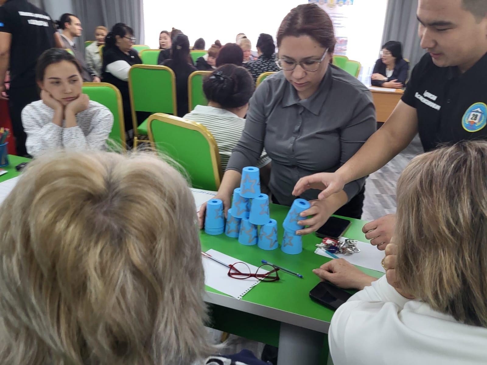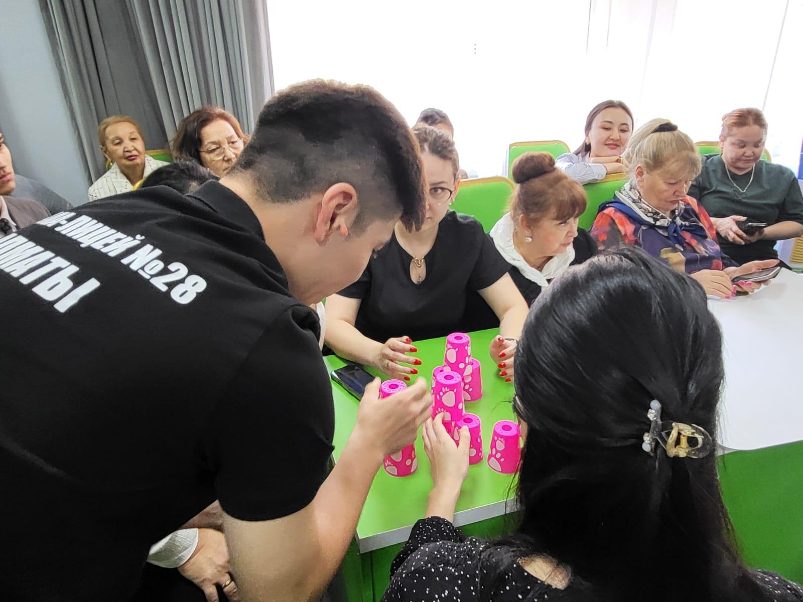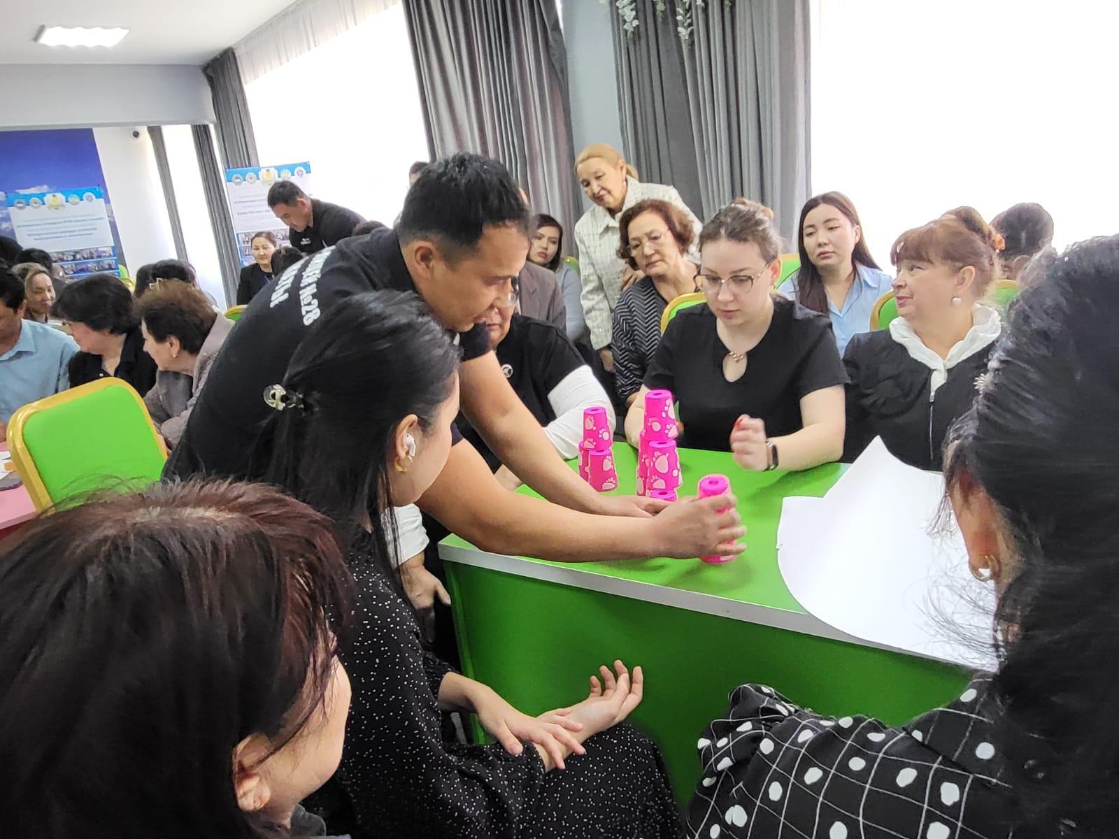 Ахметжан Аршидинович провел мастер-класс по игровой деятельности, как она влияет на развитие коммуникативных, аналитических умений и навыков, провел игру «стаканчики».