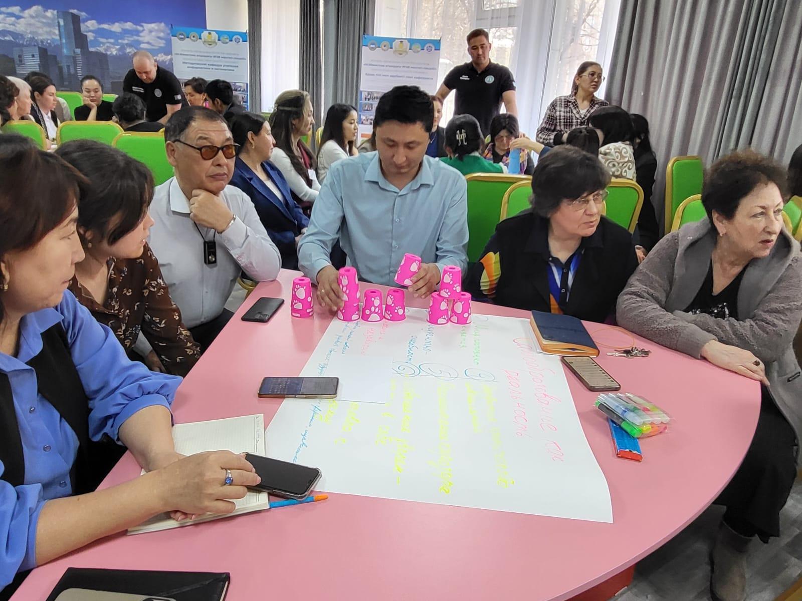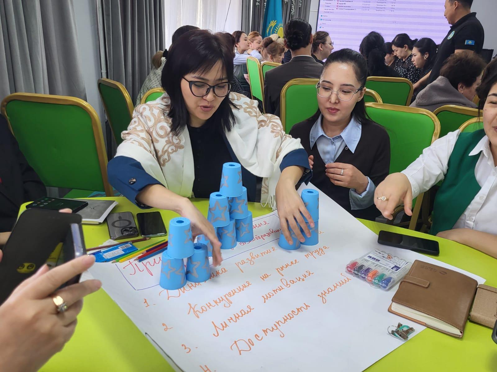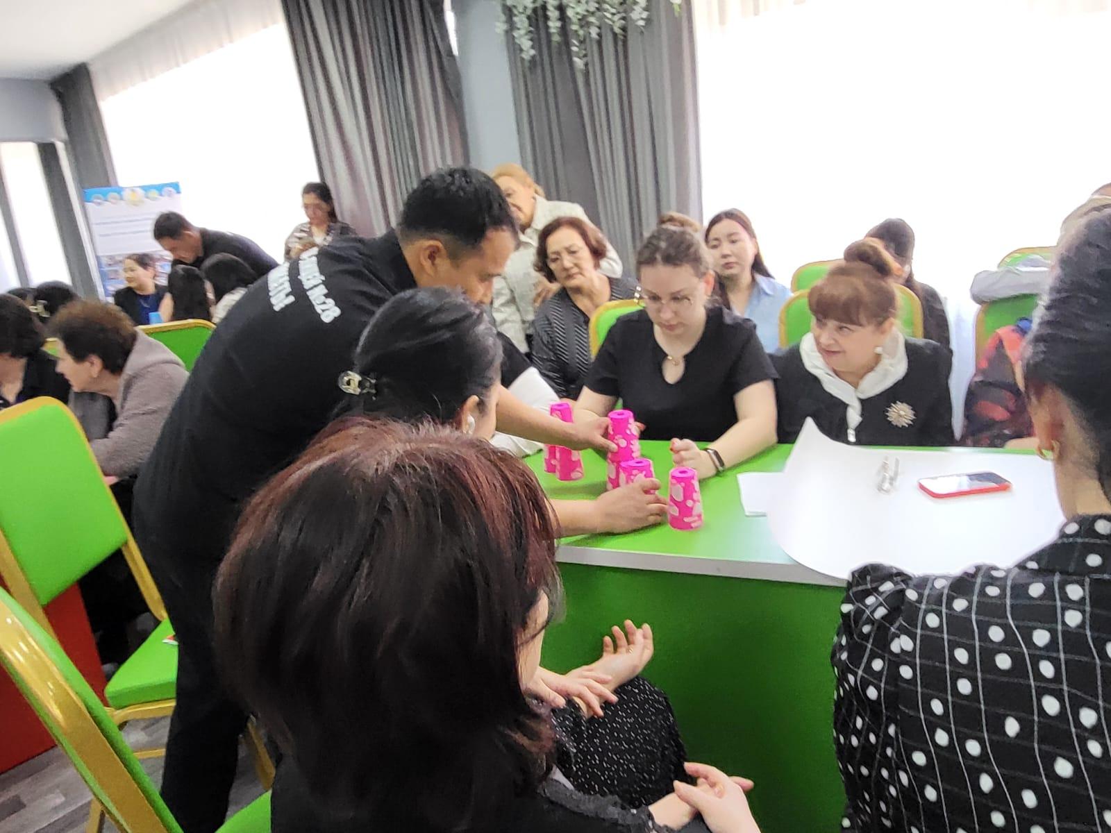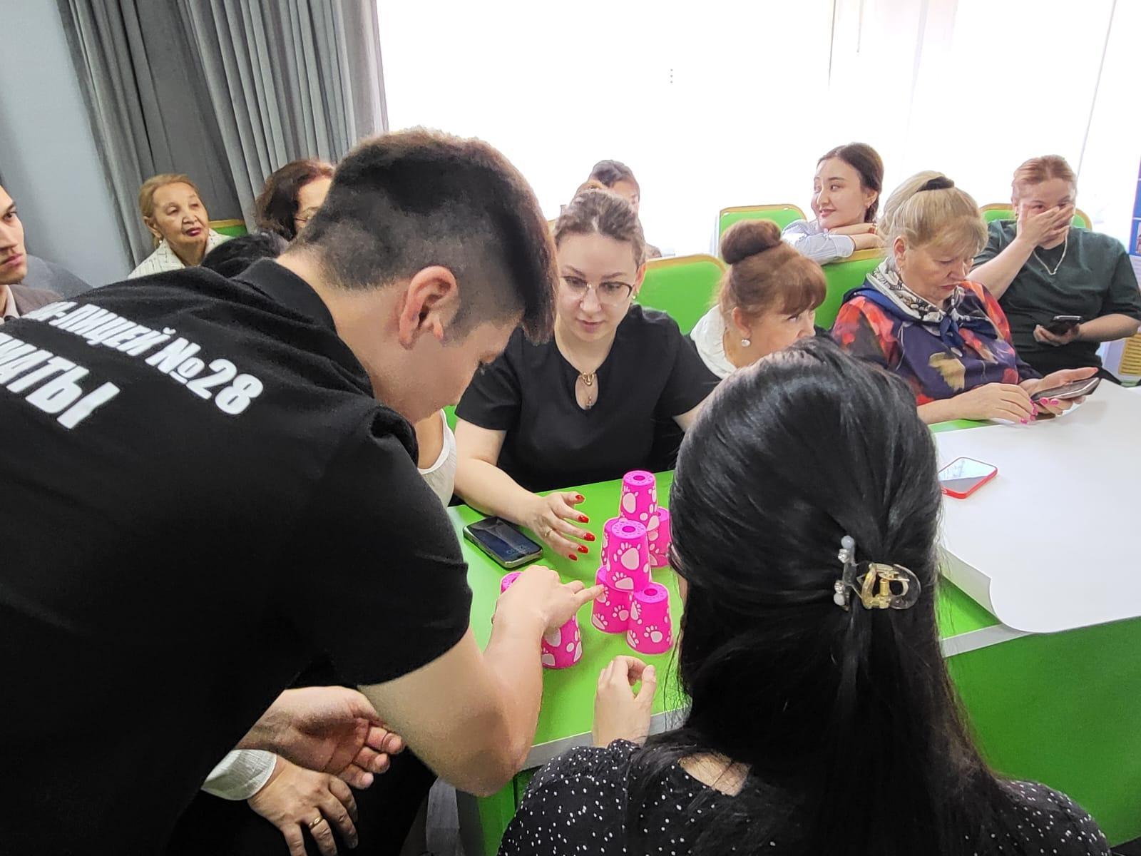 Ахметжан Аршидинович провел мастер-класс по игровой деятельности, как она влияет на развитие коммуникативных, аналитических умений и навыков, провел игру «стаканчики».