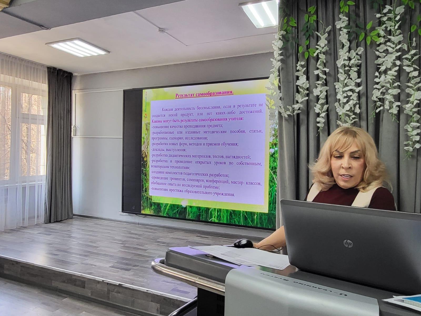 Манзура Мухтаровна дала анализ своей работы по самообразованию, самообразование – это важнейшая составляющая профессиональной деятельности учителя, которая направлена на улучшение его личных и профессиональных качеств. В контексте преподавания английского языка, самостоятельное совершенствование знаний и навыков играет ключевую роль в повышении качества образования. В условиях быстро меняющихся технологий и методик преподавания, умение учителя адаптироваться и развиваться имеет решающее значение. Рассказала об итогах работы по своей теме самообразования «Развитие навыков написанию эссе на продвинутом этапе обучения английскому языку.»