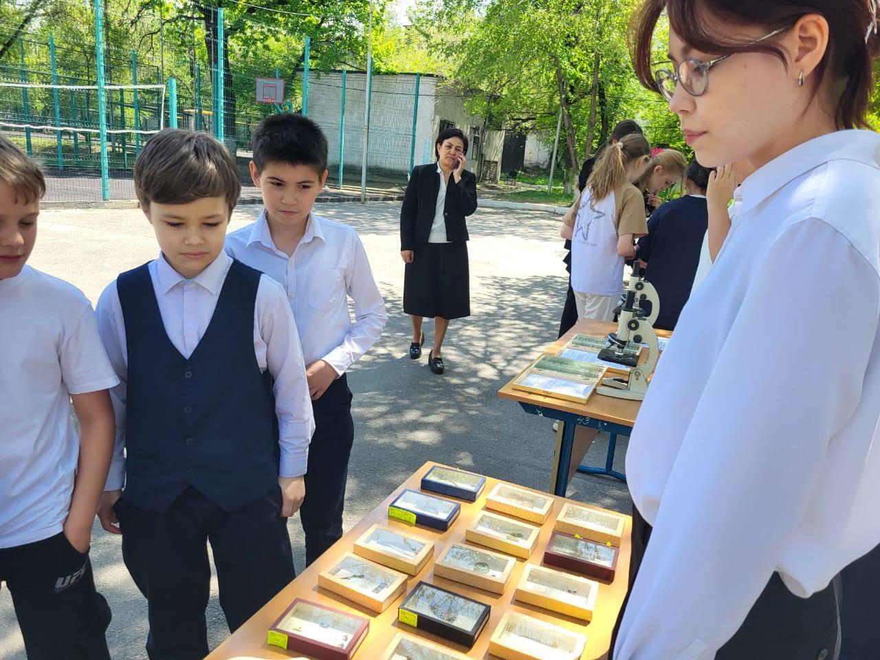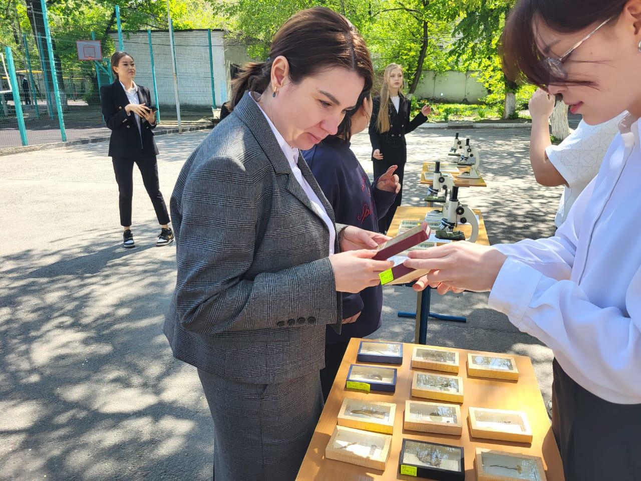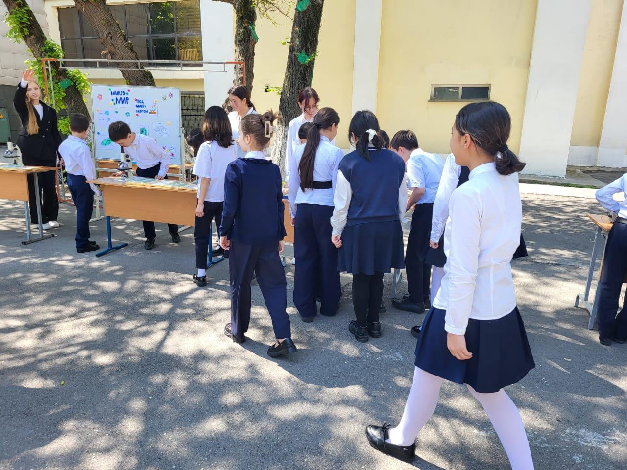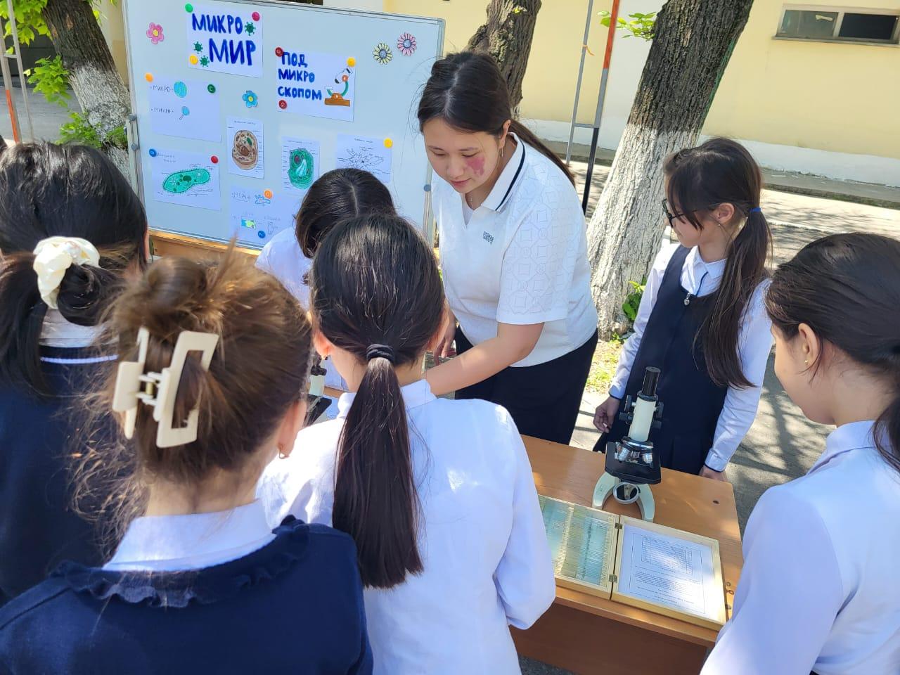 4-5 сынып оқушылары микроағзалардың көрінбейтін әлеміне үңіліп, тірі табиғаттың ең ұсақ бөлшектерінің қалай құрылғанын білді. Микроскоп арқылы түрлі объектілерді қызығушылықпен зерттеп, көптеген сұрақтар қойды.