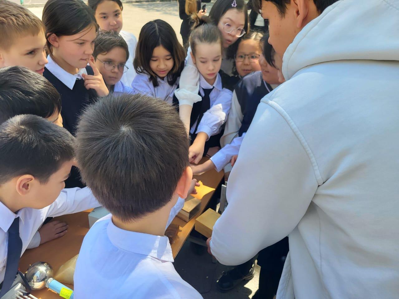 🧠 Жоғары сынып оқушылары 4-5 сыныптарға арнап қызықты ғылыми сабақтар өткізіп, өз білімдерімен бөлісті және кіші оқушыларды ғылым әлеміне тартты. Бұл іс-шара ғылымның нағыз мерекесіне айналды – жанды, интерактивті және шабыттандыратын форматта өтті. Ол кіші сынып оқушыларының дүниетанымын кеңейтіп қана қоймай, үлкен сынып оқушыларына тәлімгер ретінде өздерін танытуға мүмкіндік берді.