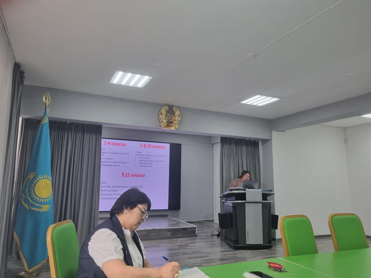 Тема: «Перевод учащихся 1-4 классов в следующий класс. Награждение похвальными листами учащихся 2-4 классов. Итоги 2024-2025 учебного года. Работа школы в летний период. О допуске к экзаменам по казахскому языку учащихся 5-8,10 классов. О допуске к итоговой аттестации учащихся 9, 11 классов.»