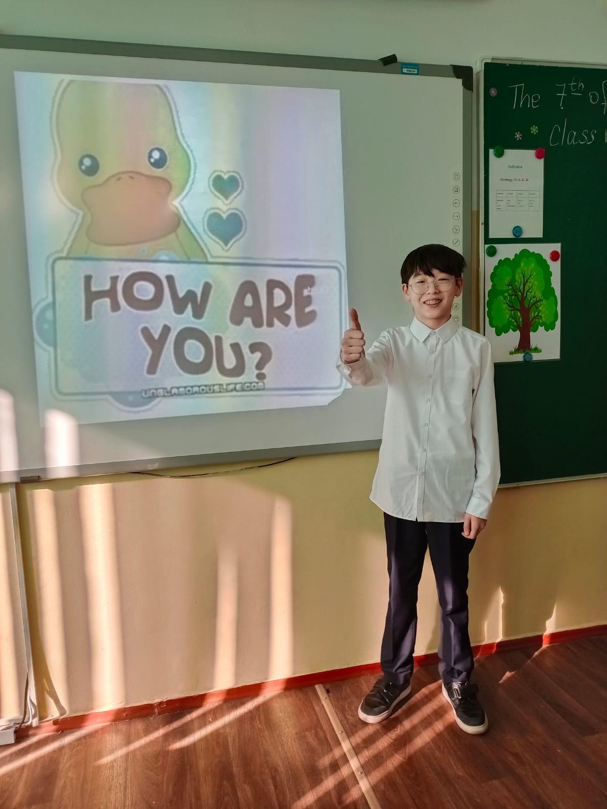 Сабақтың мақсаты – «Адамның сыртқы бейнесі мен мінезі» тақырыбы бойынша лексикалық дағдыларды қалыптастыру және дамыту, сондай-ақ оқушылардың үйренген сөздер мен тіркестерді түрлі сөйлеу жағдайларында қолдану қабілетін жетілдіру. Мұғалім практикалық тапсырмаларды шығармашылық және ойын элементтерімен үйлестіре отырып, оқу процесін динамикалық және қызықты етті.