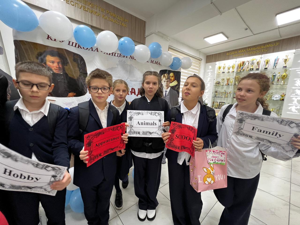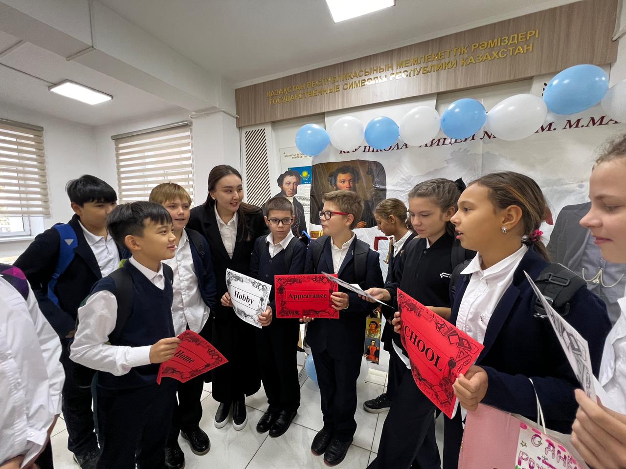Сынып аралықта мектеп дәлізі нағыз ойын алаңына айналды: оқушылардан ағылшын тіліндегі карточкаларды «ұстау», оларды тез аудару және сол сөздермен сөйлем құру талап етілді. Тапсырмалар ойын формасында жасалғандықтан, оқушылардың қызығушылығы бірден оянды.