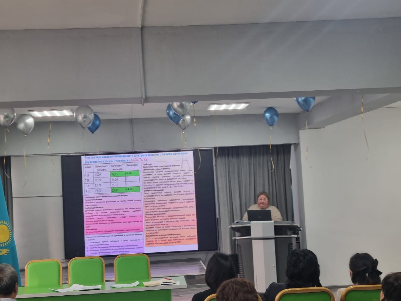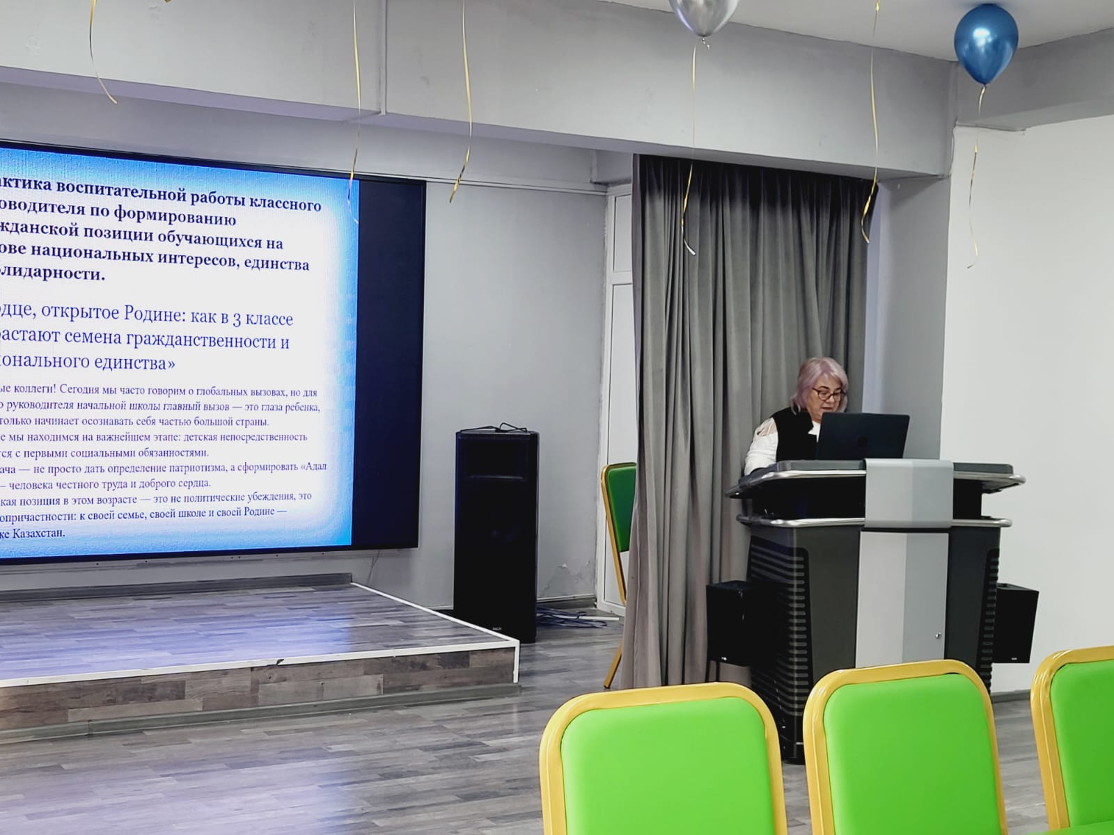 Сагымбекова Р.Е., классный руководитель 9 «Г» класса, выступила с содокладом на тему «Роль классного руководителя в формировании гражданских ценностей обучающихся через утверждение принципов справедливости, законности и социальной ответственности». Раушан Ергалиевна рассказала о воспитательных мероприятиях, в которых принимал участие класс, и подчеркнула значение системной воспитательной работы в формировании активной гражданской позиции обучающихся выпускных классов основной школы.