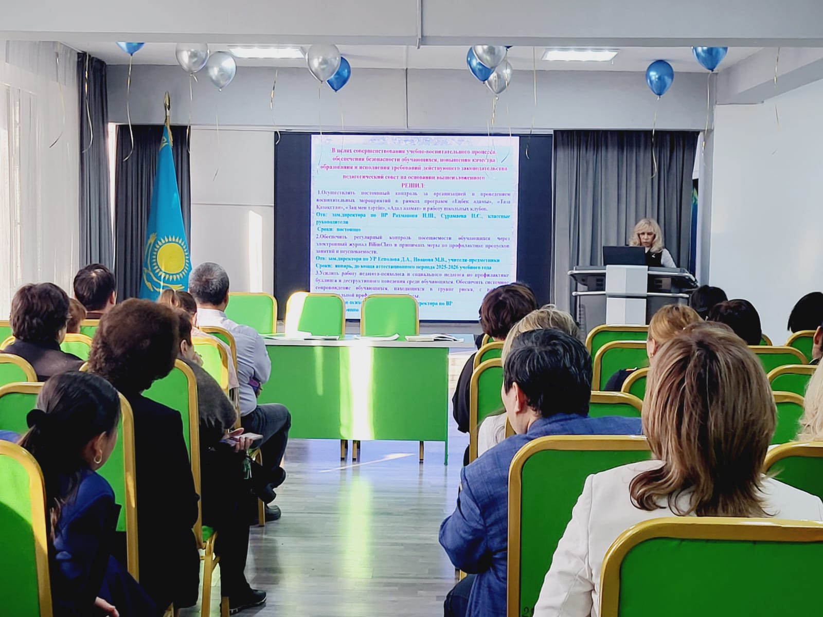Рассмотрев и обсудив выступления директора лицея Медетбековой А.Т., заместителя директора по учебной работе Ивановой М.В., заместителя директора по воспитательной работе Рахмановой Н.Ш., педагога-психолога Кожахметовой Т.О., а также классных руководителей Павлетенко В.А., Сагымбековой Р.Е. и Криворучко И.П., педагогический коллектив лицея пришёл к выводу, что 2025 год стал значимым этапом в развитии системы духовно-нравственного и гражданско-патриотического воспитания обучающихся. В ходе обсуждения было отмечено, что в образовательной деятельности школы определены приоритетные направления воспитательной работы, выстроенные в соответствии с задачами обновления содержания обучения и воспитания на основе ценностей «Единой программы воспитания “Адал азамат”. Реализация национальных системообразующих ценностей программы способствует формированию у обучающихся казахстанской гражданской идентичности, развитию толерантности, межэтнического и межкультурного взаимодействия, расширению кругозора и углублению знаний о достижениях современного Казахстана. С целью воспитания у учащихся лицея гражданственности, духовно-нравственных ориентиров и уважения к историческому наследию страны, в преддверии празднования 34-летия Независимости Республики Казахстан в школе была организована и проведена система внеклассных мероприятий, классных часов, круглых столов, открытых уроков. Особо отмечена работа школьного музея Боевой Славы, комнаты О.Сулейменова, где руководители Соколова Н.М. и Письмерова М.А. совместно с активом обучающихся на регулярной основе проводят экскурсии для учащихся лицея и школ города, что способствует сохранению исторической памяти и преемственности поколений. Педагогический совет также отметил результативную деятельность военно-патриотического клуба «Улан», члены которого ежегодно принимают участие в мероприятиях районного, городского и республиканского уровней, конкурсах и смотрах различной направленности, демонстрируя высокий уровень подготовки и занимая призовые места.