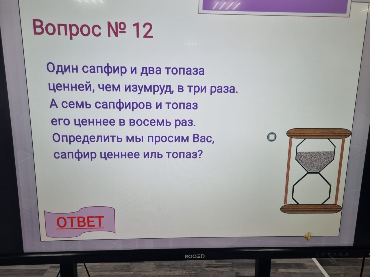 Іс-шараның бастамашысы әрі негізгі ұйымдастырушысы әдістемелік кафедраның жетекшісі, математика пәнінің мұғалімі Пулатова Г.А. болды. Ал бірегей сұрақтардың авторы және ойын жүргізушісі Кузнецов Павел атанды. Зияткерлік сайыс барысында «Бэшники» және «Фора» атты екі талапты команда өзара бақ сынасты. Қатысушылар білімдерінің жоғары деңгейін, командада жұмыс істей білу қабілеттерін және күрделі жағдайларда жылдам шешім қабылдау дағдыларын көрсетті.