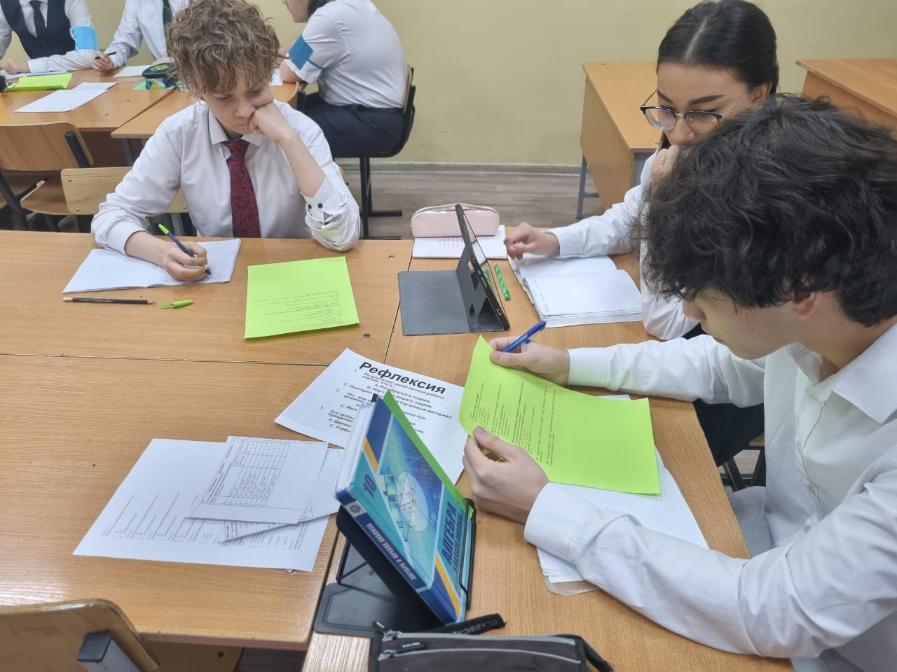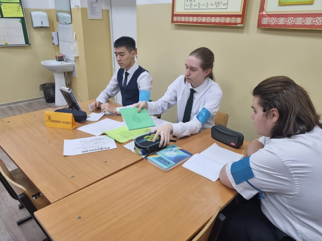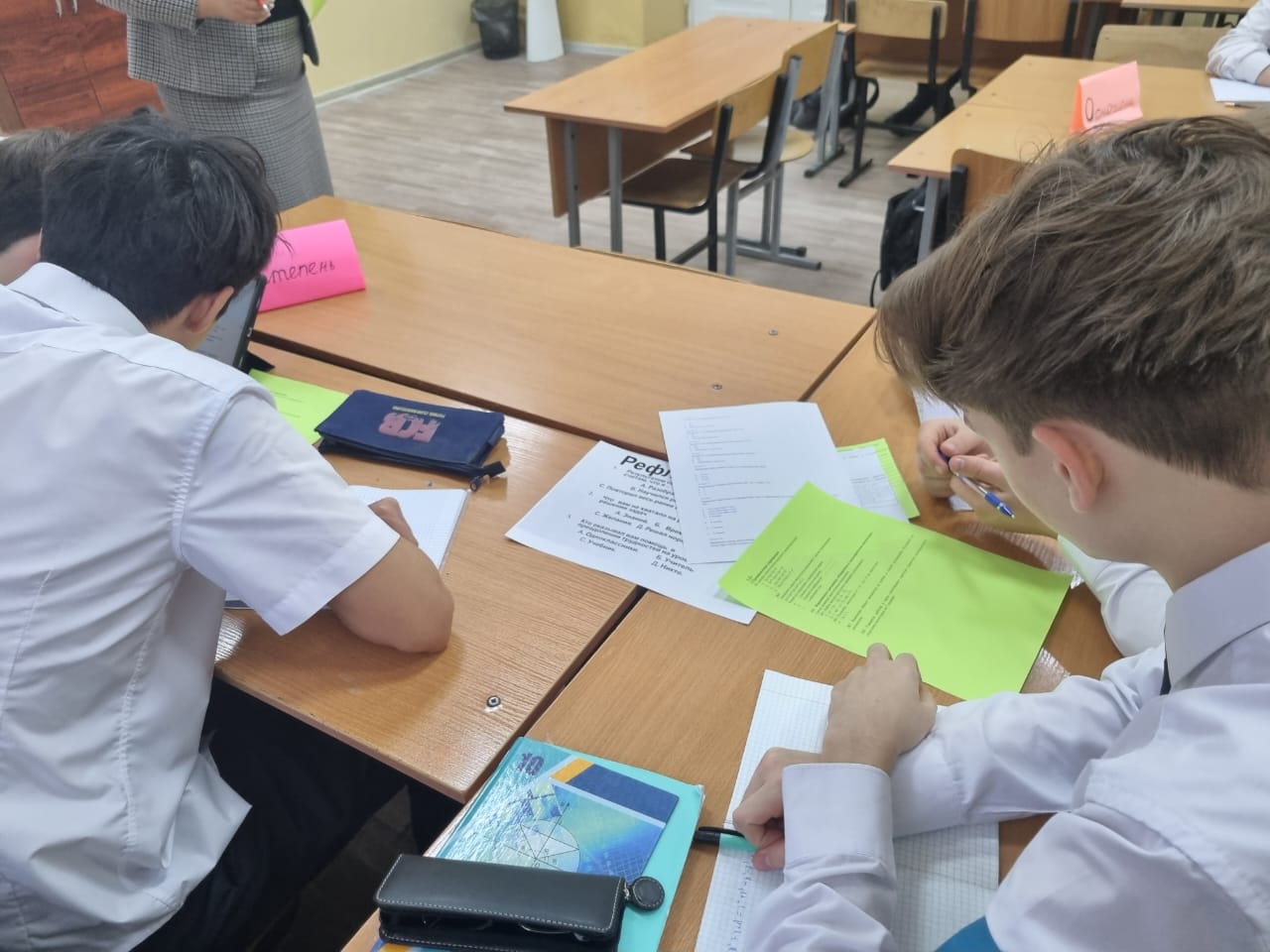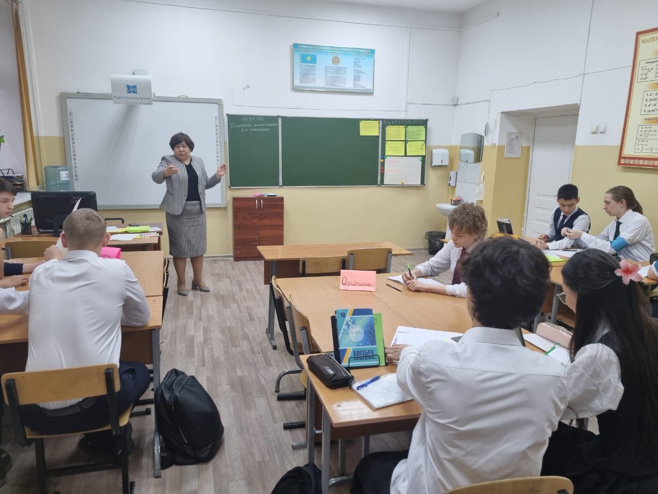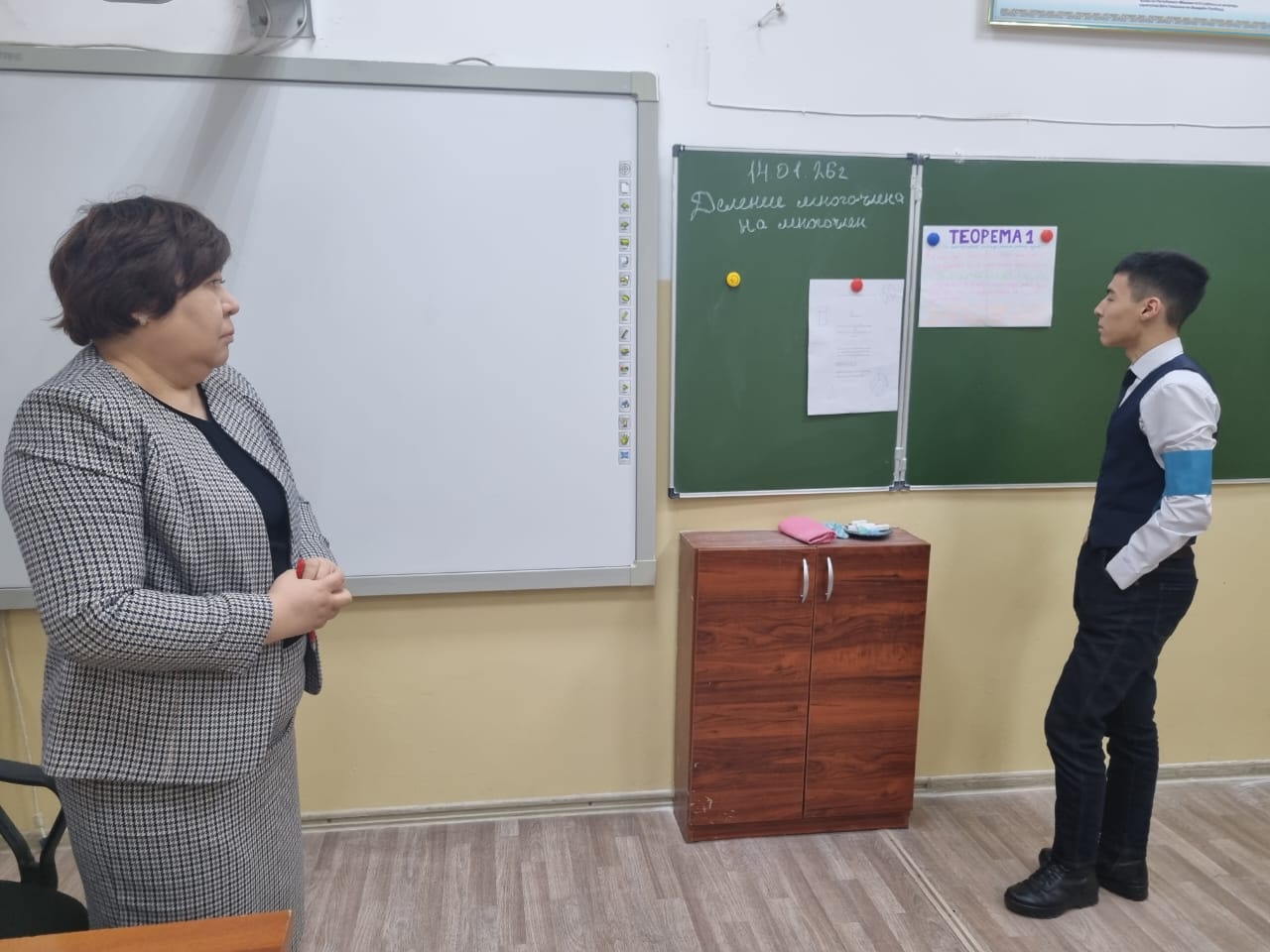 Сабаққа оқушылар белсенді қатысып, көпмүшелерді «бұрыштап» бөлу алгоритмін меңгеріп, қалдықты табуда Безу теоремасын қолдану жолдарын қарастырды. Сабақ жоғары қарқындылығымен және оқу әрекеттерінің алуан түрлілігімен ерекшеленді: мысалдарды ұжымдық талдаудан бастап, күрделілігі жоғары тапсырмаларды өздігінен орындауға дейін қамтылды.
