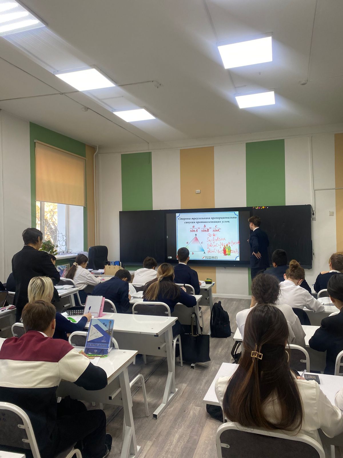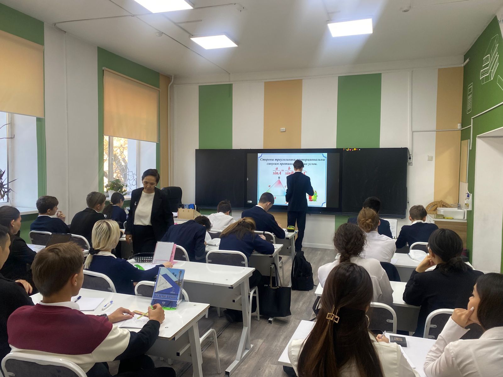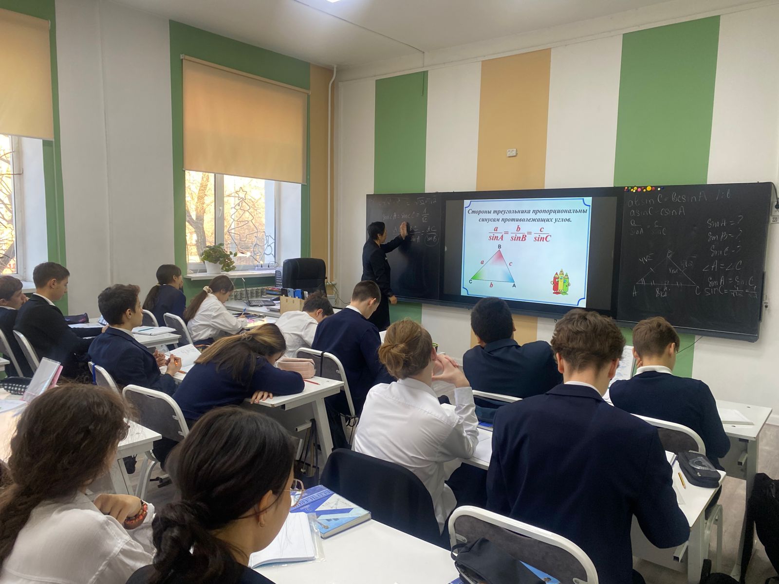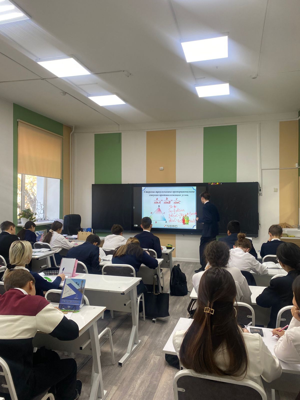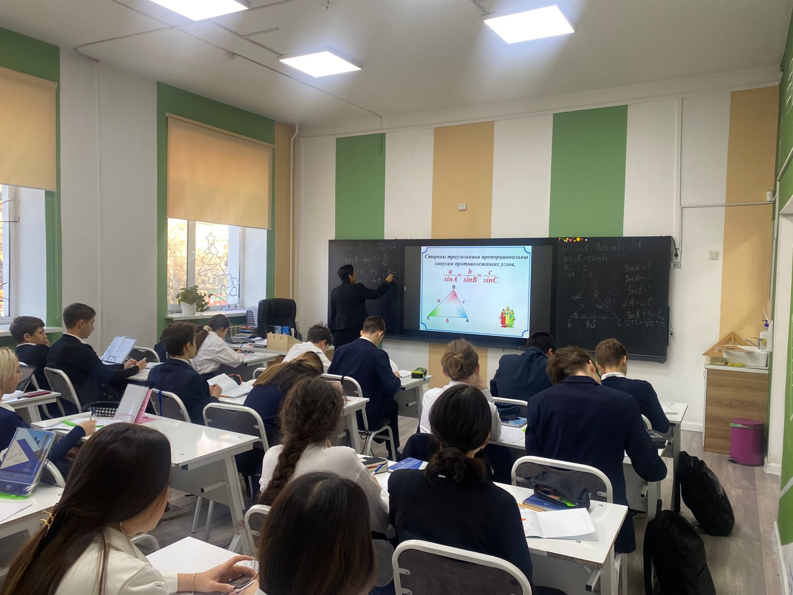 Математика және информатика пәндік онкүндігі аясында 13 қаңтар күні М. Мәметова атындағы №28 мектеп-лицейінде 9 «Б» сыныбында «Үшбұрыштарды шешу» тақырыбында танымдық ашық геометрия сабағы өтті. Сабақты Пулатова Г.А. жүргізді. Педагог оқу үдерісін әрбір оқушы синустар мен косинустар теоремаларын қолдану арқылы фигуралардың белгісіз элементтерін табу дағдыларын көрсете алатындай етіп тиімді ұйымдастырды.