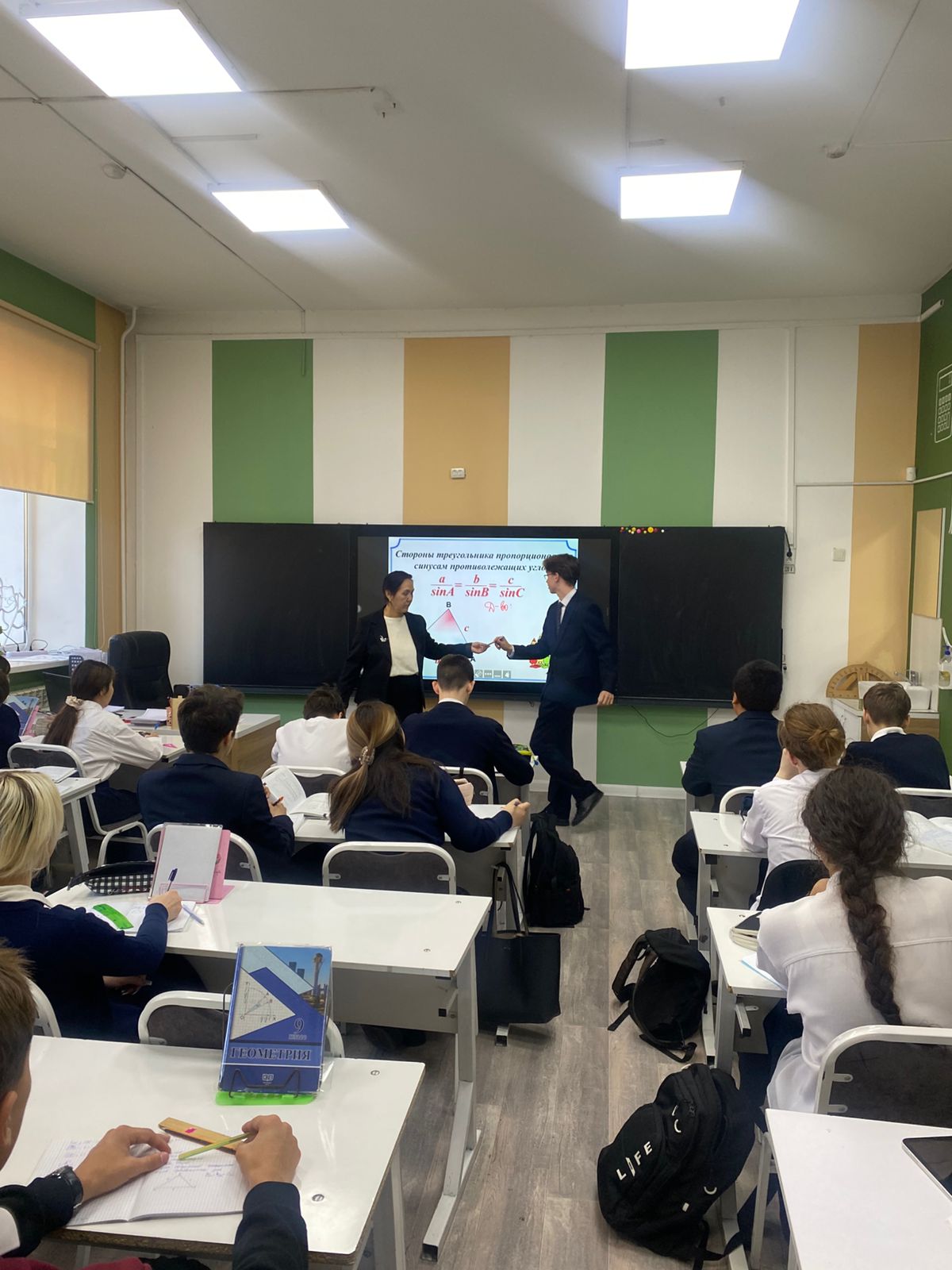 9 «Б» сыныбында «Үшбұрыштарды шешу» тақырыбында ашық геометрия сабағы өтті