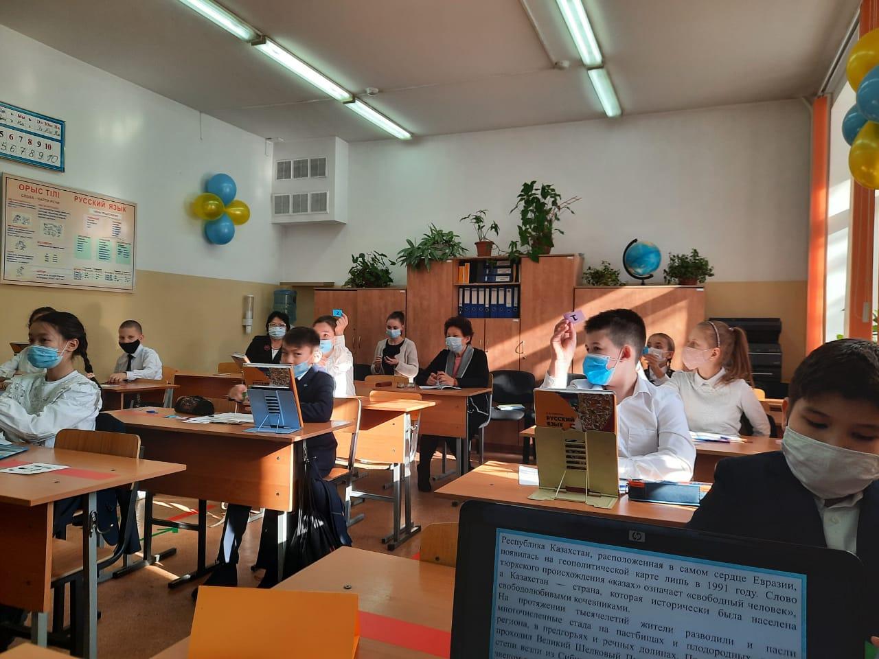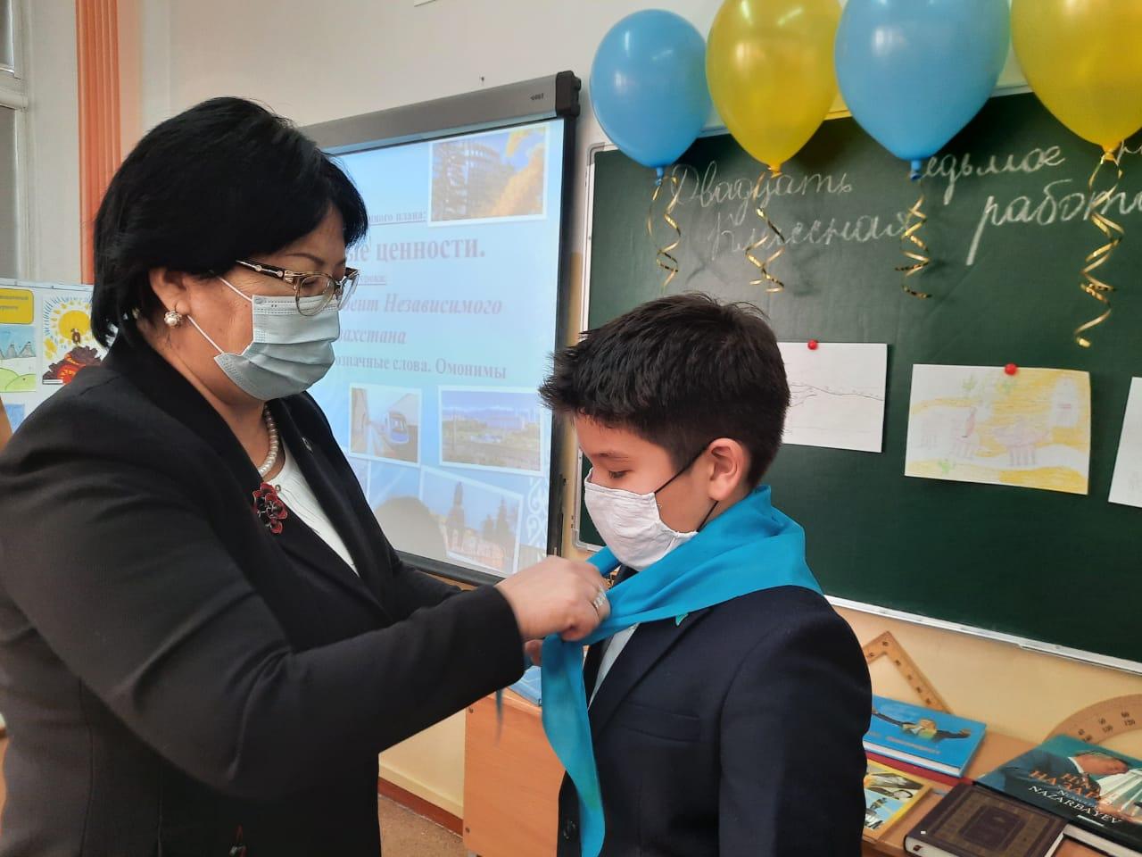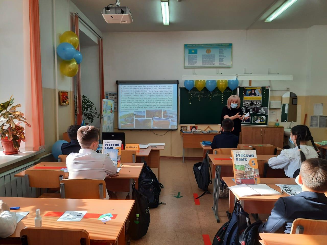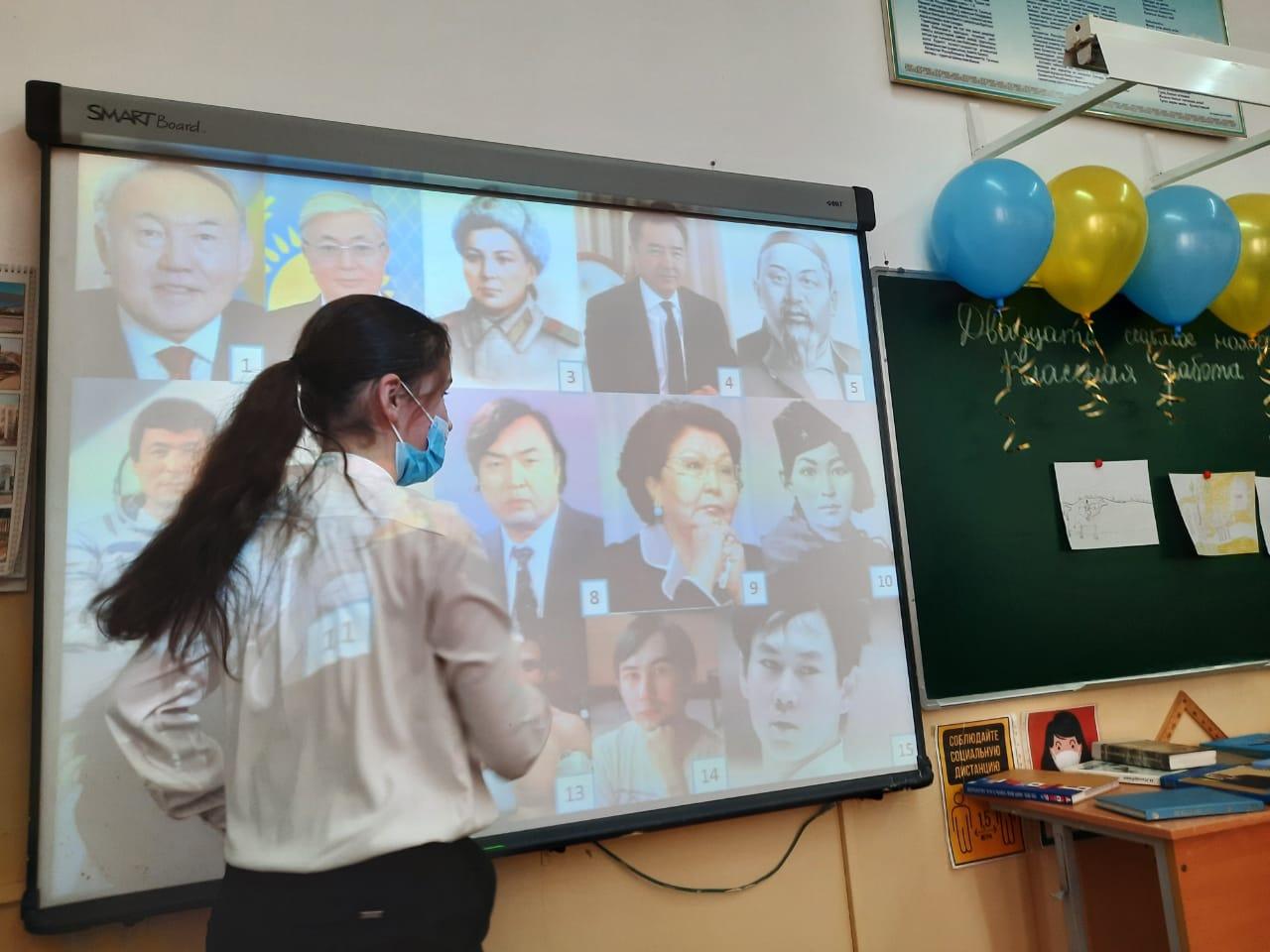 27 ноября в КГУ «Школа-лицей №28 им.М.Маметовой» в честь Дня первого Президента, в дежурном 5 «Б» классе прошел открытый урок русского языка. «Родина. Первый президент Независимого Казахстана. Омонимы. Синонимы. Многозначные слова», учитель Ключинская Э.В. Учащиеся активно участвовали во всех этапах урока – рассказывали стихи, составляли постеры по теме урока, составляли план, задавали вопросы, оценивали, показали хорошие учебные знания по предмету, исторические знания и биографии Первого Президента. Одним их этапов уроков была викторина «Лица», где были представлены исторические личности из разных периодов нашей истории, учащиеся наперебой называли их имена и их значение в истории нашего государства. На познавательной викторине учащиеся показали свои разносторонние знания, на следующий урок будет подведен итог конкурса эссе «Если бы я был Президентом…», которое детям было задано как домашнее задание. На открытом уроке присутствовали администрация и учителя предметники, директор Медетбекова А.Т., обратилась к учащимся с поздравлениями с праздником и пожелала, чтобы они ни когда не утратили тягу к знаниям, уважали и знали историю нашего государства, так же повязала галстуки «Жас Ұлан» отличникам и активистам учебы. Посвящение в ряды Жас Ұлан учащихся 5-х классов сталов стало традиций к дню Первого Президента.