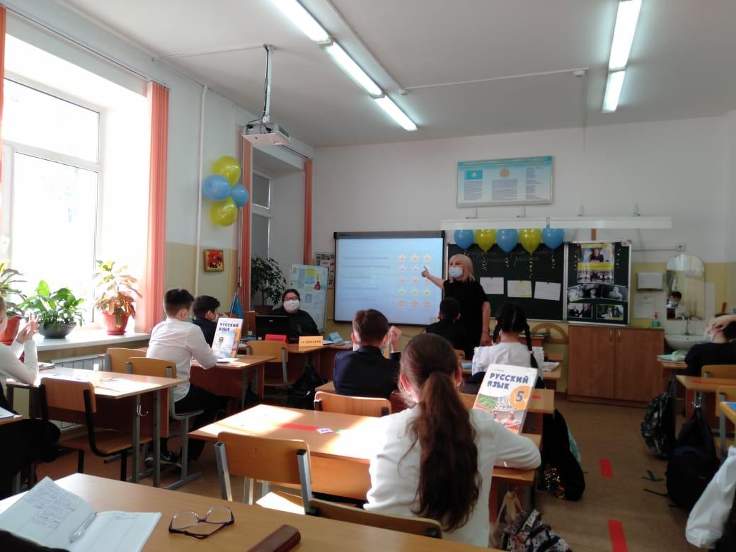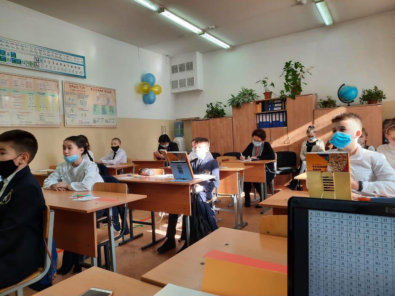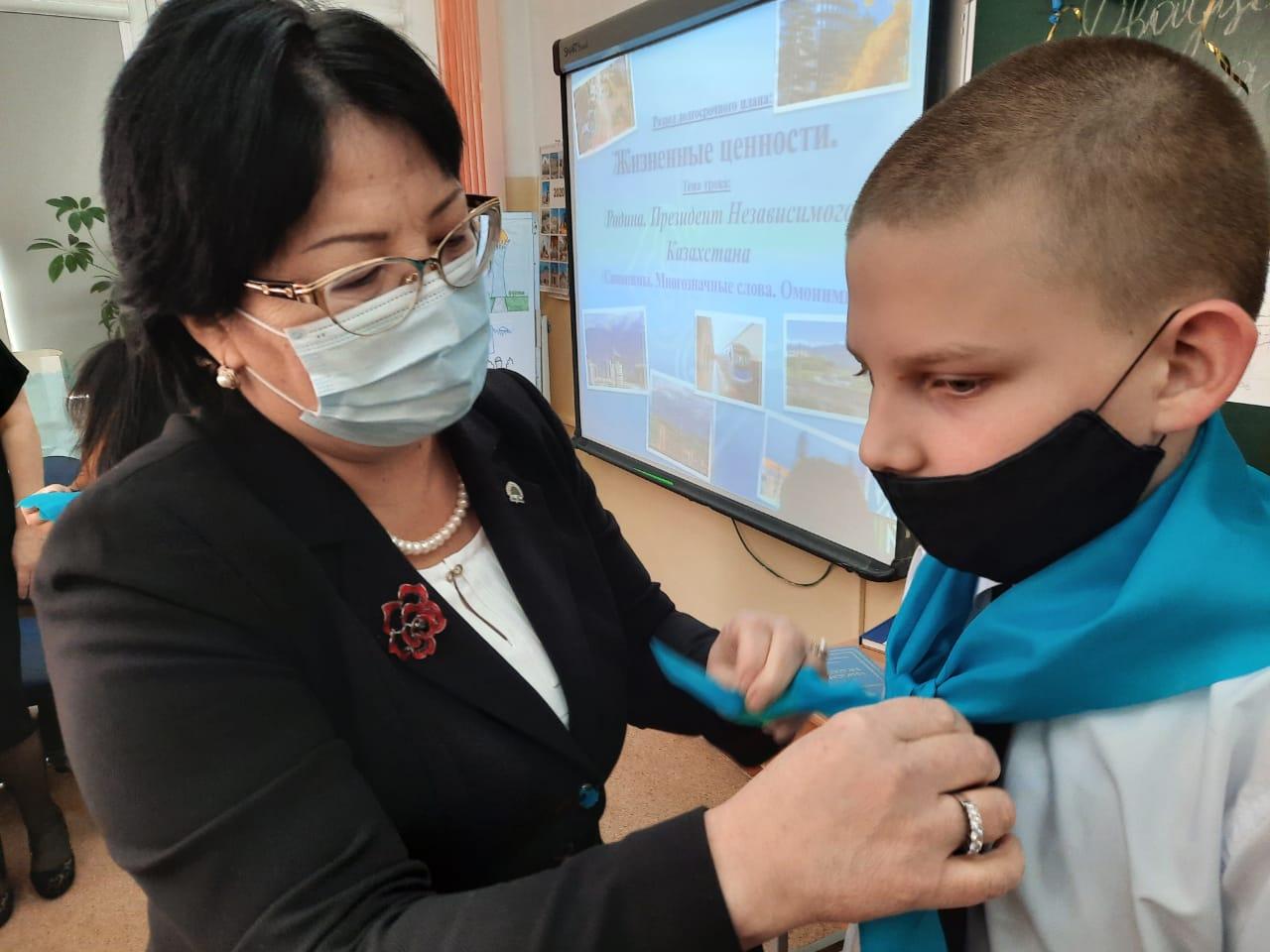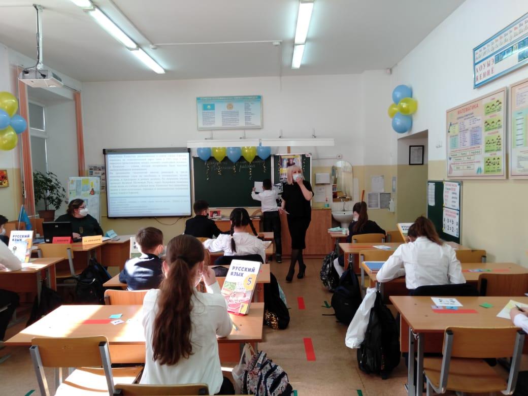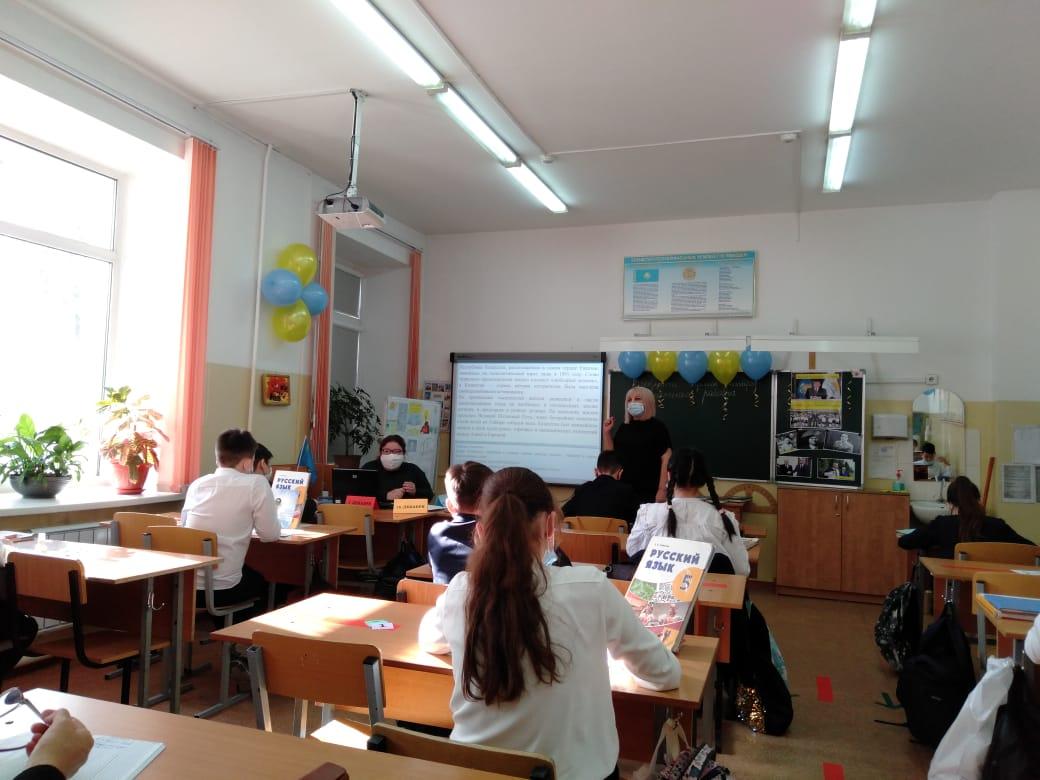 27 ноября в КГУ «Школа-лицей №28 им.М.Маметовой» в честь Дня первого Президента, в дежурном 5 «Б» классе прошел открытый урок русского языка. «Родина. Первый президент Независимого Казахстана. Омонимы. Синонимы. Многозначные слова», учитель Ключинская Э.В. Учащиеся активно участвовали во всех этапах урока – рассказывали стихи, составляли постеры по теме урока, составляли план, задавали вопросы, оценивали, показали хорошие учебные знания по предмету, исторические знания и биографии Первого Президента. Одним их этапов уроков была викторина «Лица», где были представлены исторические личности из разных периодов нашей истории, учащиеся наперебой называли их имена и их значение в истории нашего государства. На познавательной викторине учащиеся показали свои разносторонние знания, на следующий урок будет подведен итог конкурса эссе «Если бы я был Президентом…», которое детям было задано как домашнее задание. На открытом уроке присутствовали администрация и учителя предметники, директор Медетбекова А.Т., обратилась к учащимся с поздравлениями с праздником и пожелала, чтобы они ни когда не утратили тягу к знаниям, уважали и знали историю нашего государства, так же повязала галстуки «Жас Ұлан» отличникам и активистам учебы. Посвящение в ряды Жас Ұлан учащихся 5-х классов сталов стало традиций к дню Первого Президента.