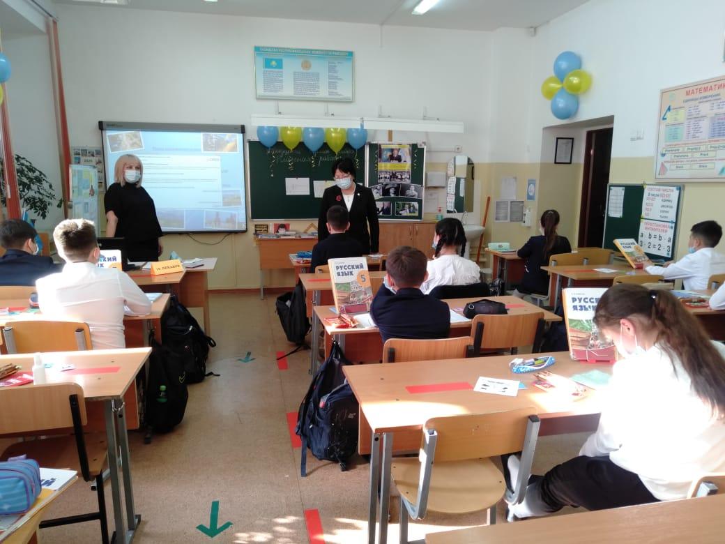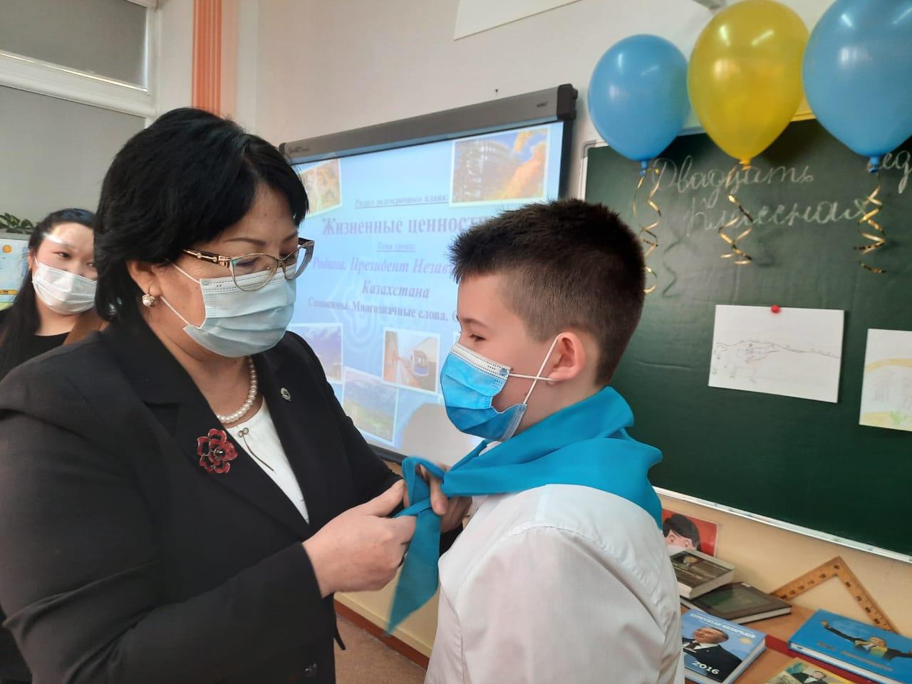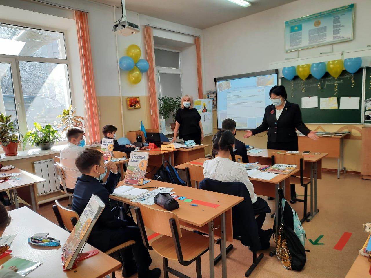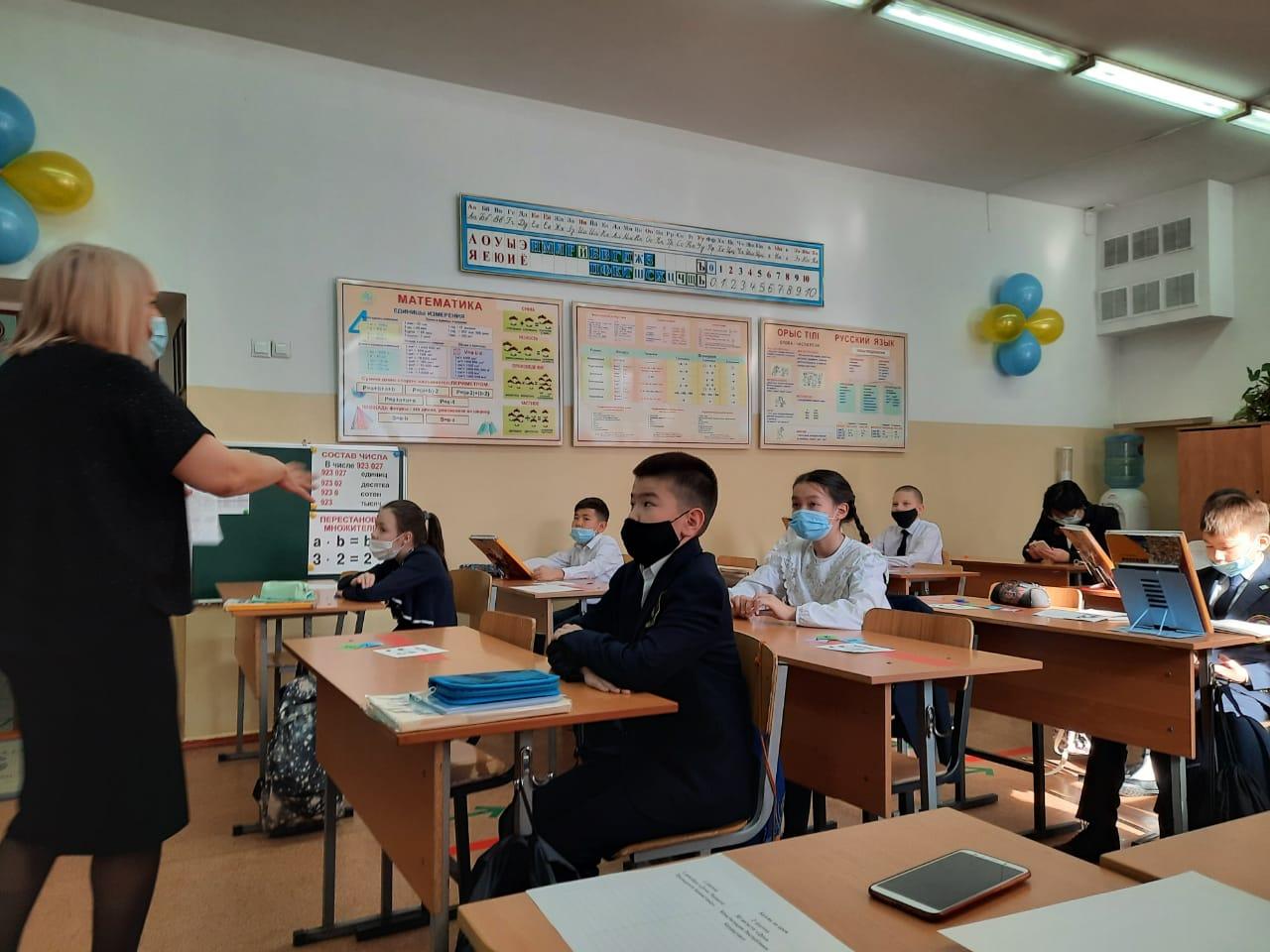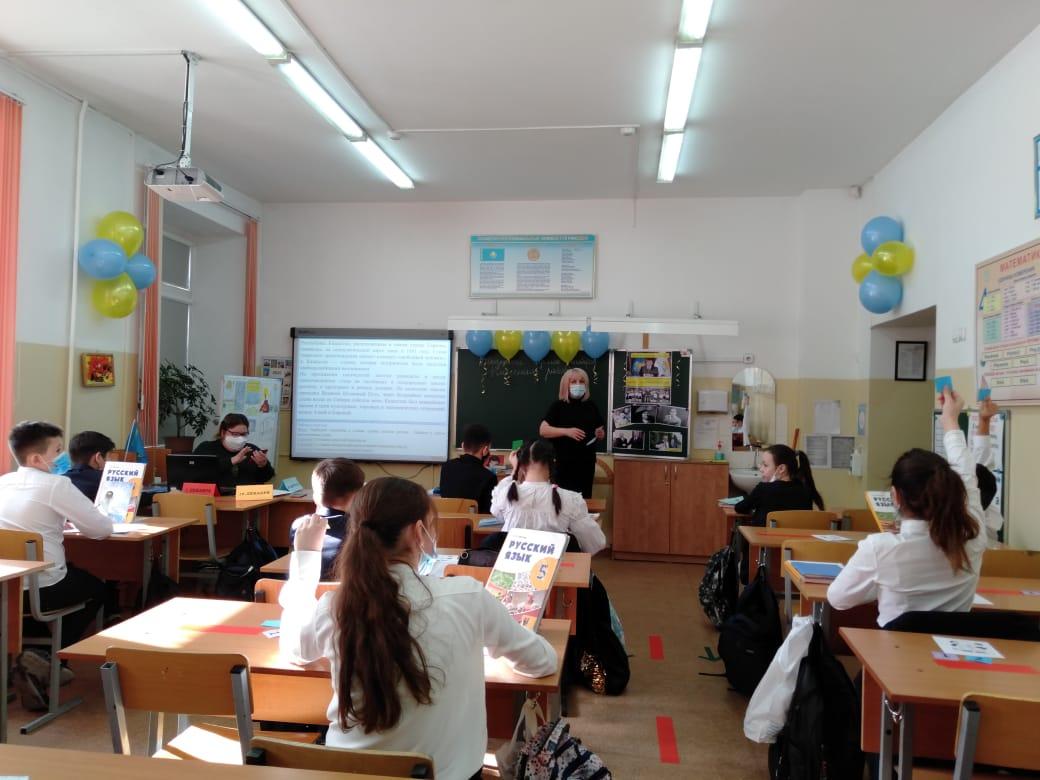 27 ноября в КГУ «Школа-лицей №28 им.М.Маметовой» в честь Дня первого Президента, в дежурном 5 «Б» классе прошел открытый урок русского языка. «Родина. Первый президент Независимого Казахстана. Омонимы. Синонимы. Многозначные слова», учитель Ключинская Э.В. Учащиеся активно участвовали во всех этапах урока – рассказывали стихи, составляли постеры по теме урока, составляли план, задавали вопросы, оценивали, показали хорошие учебные знания по предмету, исторические знания и биографии Первого Президента. Одним их этапов уроков была викторина «Лица», где были представлены исторические личности из разных периодов нашей истории, учащиеся наперебой называли их имена и их значение в истории нашего государства. На познавательной викторине учащиеся показали свои разносторонние знания, на следующий урок будет подведен итог конкурса эссе «Если бы я был Президентом…», которое детям было задано как домашнее задание. На открытом уроке присутствовали администрация и учителя предметники, директор Медетбекова А.Т., обратилась к учащимся с поздравлениями с праздником и пожелала, чтобы они ни когда не утратили тягу к знаниям, уважали и знали историю нашего государства, так же повязала галстуки «Жас Ұлан» отличникам и активистам учебы. Посвящение в ряды Жас Ұлан учащихся 5-х классов сталов стало традиций к дню Первого Президента.