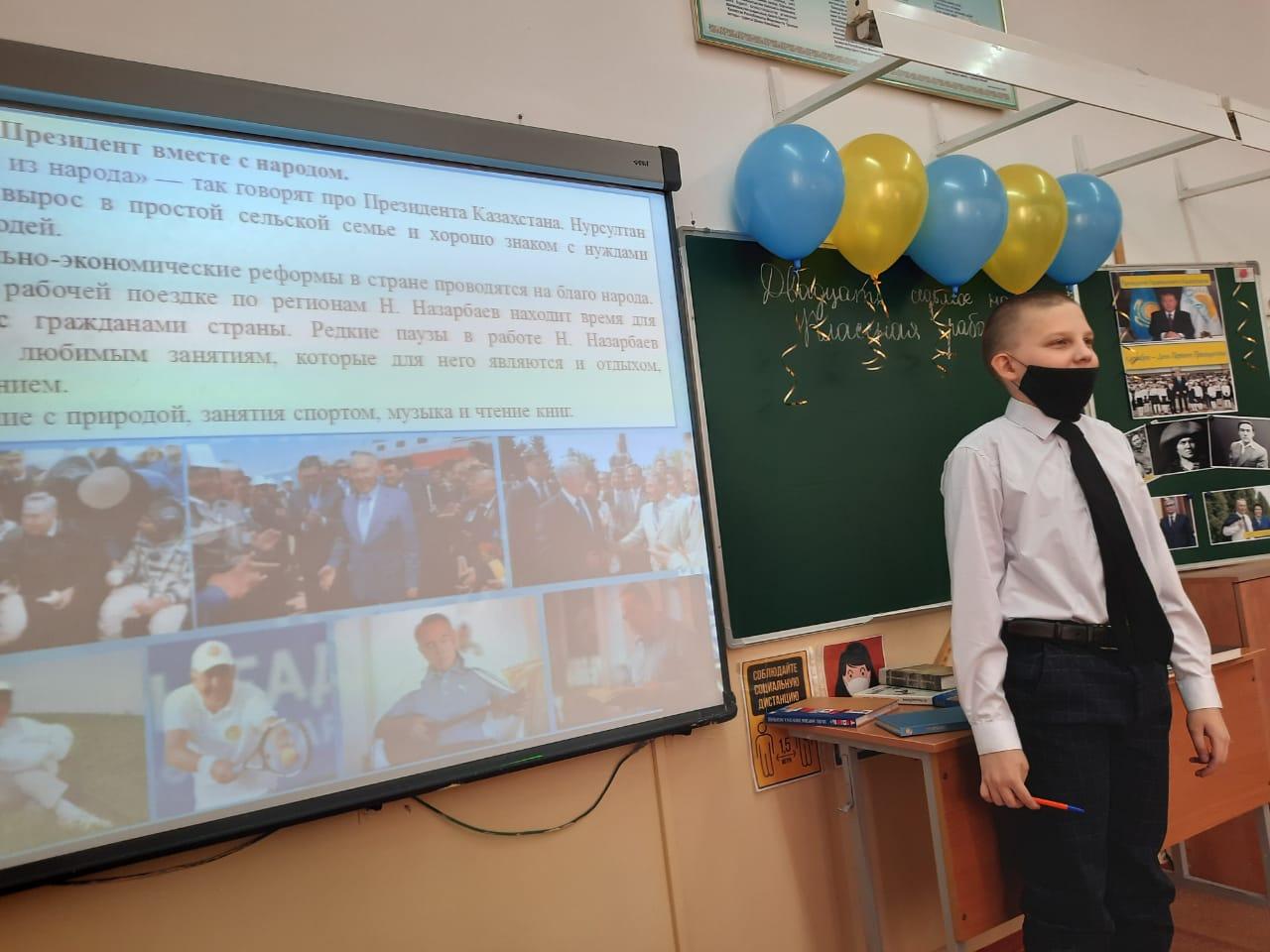 Открытый урок в дежурном 5 "Б" классе, посвященный дню Первого Президента