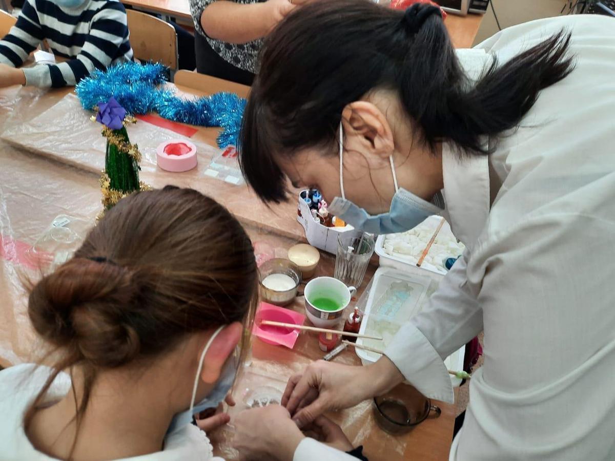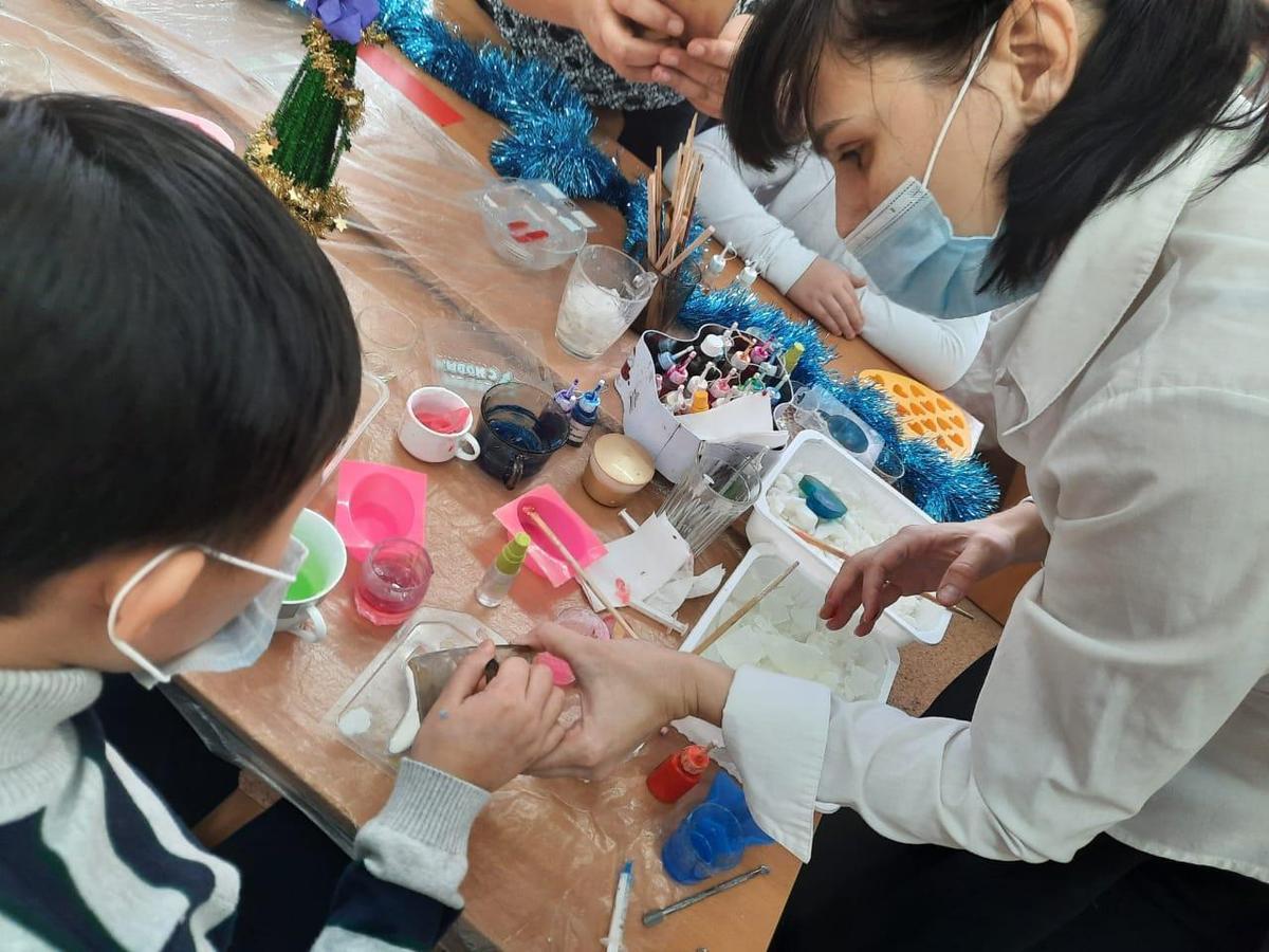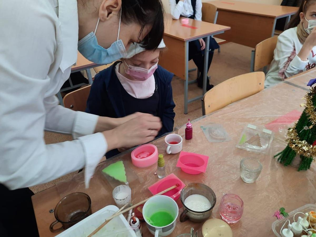Сварить мыло самому - очень интересный и завораживающий процесс! 28 декабря 2020 в 4Г и 2В классах, классный руководитель Кучербаева А.К., в рамках урока художественного труда «Искусство составления композиции» мамой Феоктистовой Анны, был проведен мастер-класс по мыловарению. Целями которого стали: расширение знаний детей о производстве мыла, научить детей самостоятельно изготовлять мыло в домашних условиях, гигиена тела в период COVID-19. Под руководством мастера дети, получив жидкую основу, выбрали форму, начали практическую самостоятельную деятельность по изготовлению продукта. Через некоторое время, когда продукт застыл, учащиеся по очереди показывали своё мыло, рассказывали о нём.