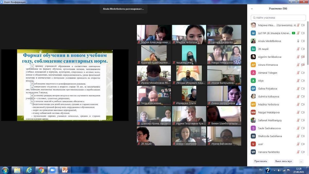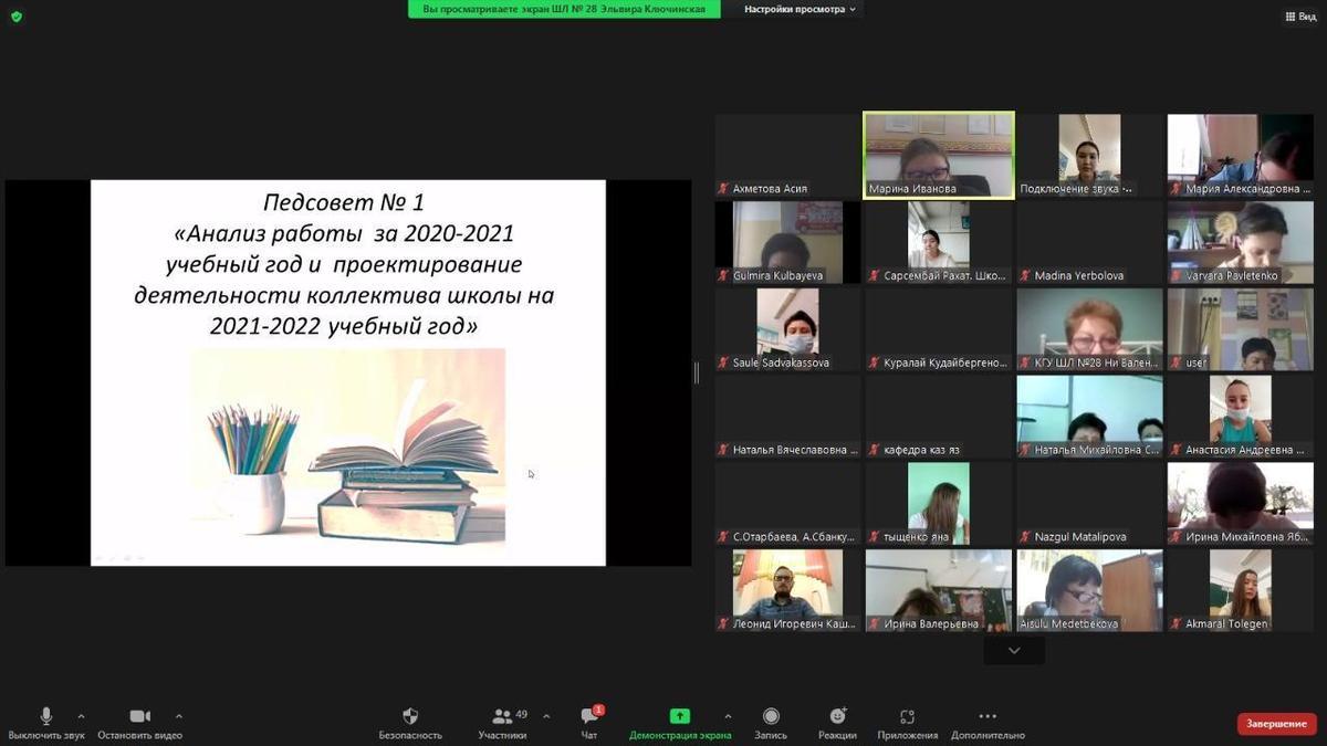 По первому вопросу слушали Медетбекову А.Т. – директора школы-лицея, которая дала полный анализ работы школы за 2020-2021 учебный год, рассказала о формате обучения в новом учебном году. Качество обучения на конец 2020-2021 учебного года составило 74,9%, успеваемость 100%, средний балл ЕНТ – 96,4 балла, учащиеся получившие образовательный грант – 17 учащихся.