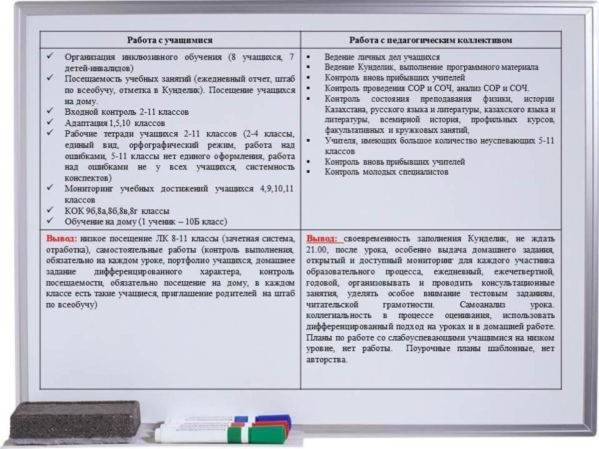 3.Усилить контроль за преподаванием предметов в 5-х классах (русский язык, история, естествознание), в 6-11-х классах (история Казахстана, всемирная история, ЧОП, английский язык) в целях повышения качества знаний учащихся и провести классно-обобщающий контроль в 8г, 9б, 10б классах.
