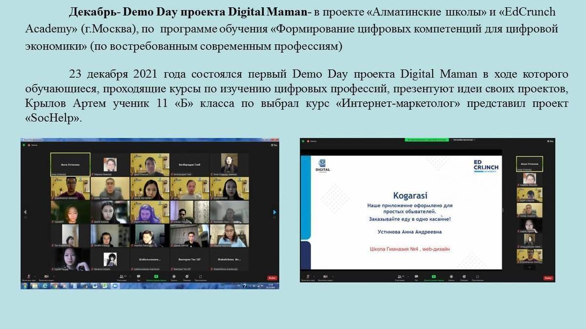По четвертому вопросу слушали вожатую Яброву И.М. (Жаксыбай А.С. – зам.директора по ВР на больничном), которая рассказала, как проходит реализация проектов, рекомендованных МОН РК:
