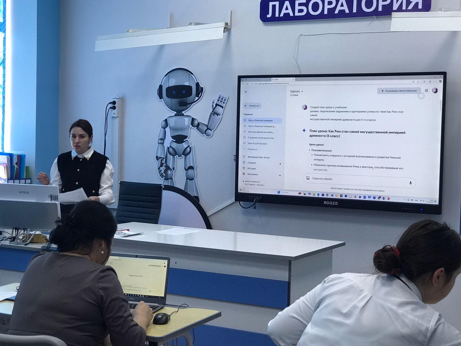 По реализации проекта «Зарубежная стажировка» в рамках Программы развития кадрового потенциала работников образования г.Алматы «Алматинские школы», и Единой программы воспитания «Біртұтас тәрбие», при поддержке Городского научно-методического центра новых технологий в образовании Управления образования г.Алматы, 12 декабря 2024 года в КГУ «Школа-лицей №28 им.М.Маметовой» состоялся городской семинар-тренинг для заместителей директоров по учебной части: «Искусственный интеллект в образовании: новые горизонты для школьного обучения. Искусственный интеллект как инструмент для персонализированного обучения». До начала семинара для гостей были проведены экскурсии: по Музею Боевой славы – Соколова Н.М. с учащимися 8-9 классов; Школьной комнате О.Сулейменова – Письмерова М.А, с учащимися 9а класса; организована выставка ЦК «IT и STEM-образования» STEM – Ключинская Э.В. - зам.директора по ПО, учителя информатики - Шалтеева Н.К., Рахметалла У.Т.. С приветственным словом из опыта Международных стажировок выступила директор – Медетбекова А.Т., она рассказала о Швейцарии: «Исследование образовательных практик и технологий» и внедрении ИИ в образовательный процесс школы. В педагогических мастерских опытом работы поделились: учителя казахского языка и литературы: Даулеткелдинова Г.А., Сагымбекова Р.Е., Рахманова Н.Ш. «Қазақ тілі мен әдебиеті сабағында QR код арқылы оқылым, тыңдалым тапсырмаларын ұйымдастыру»; учитель физики Ниязов М.Н. «Использование "chatgpt" как инструмента для поиска актуальных анимаций и симуляций для более глубокого объяснения материала»; учителя информатики: Шалтеева Н.К., Рахметалла У.Т. «Практический гайд: как использовать ИИ в своей педагогической деятельности»; учитель начальных классов - Жукенова А.Ж. провела урок естествознания в 3а классе: "Состав и свойства воздуха", с применением chatGPT, deepai.org, educaplay, qazmath.net , QR коды, Wordwall, LiveWorksheet, Canva, Di-idai; учитель математики - Пулатова Г.А. «Искусственный интеллект как инструмент для углубленного изучения математики». С основным докладом выступила зам.директора по УР – Иванова М.В., которая рассказала о методах и приемах использования ИИ в школе для учителей и учащихся. Психологические разминки были актуальны в ходе семинара, которые провела педагог-психолог Кожахметова Т.О.. Соколова Н.М., педагог-мастер провела рефлексию при помощи облака тегов. Локтионова О.С. - методист ГНМЦНТО подвела итог семинара, отметив его профессиональный уровень и практическую значимость для развития образовательных подходов в школах Алматы. Внедрение искусственного интеллекта в учебный процесс открывает новые горизонты для персонализированного обучения, повышает мотивацию учащихся и расширение метопредметных связей. Семинар стал площадкой для обмена опытом и внедрения практических подходов к внедрению ИИ в образовательный процесс. Участники отметили высокий уровень организации, актуальность тематики и практическую ценность представленных мастерских.