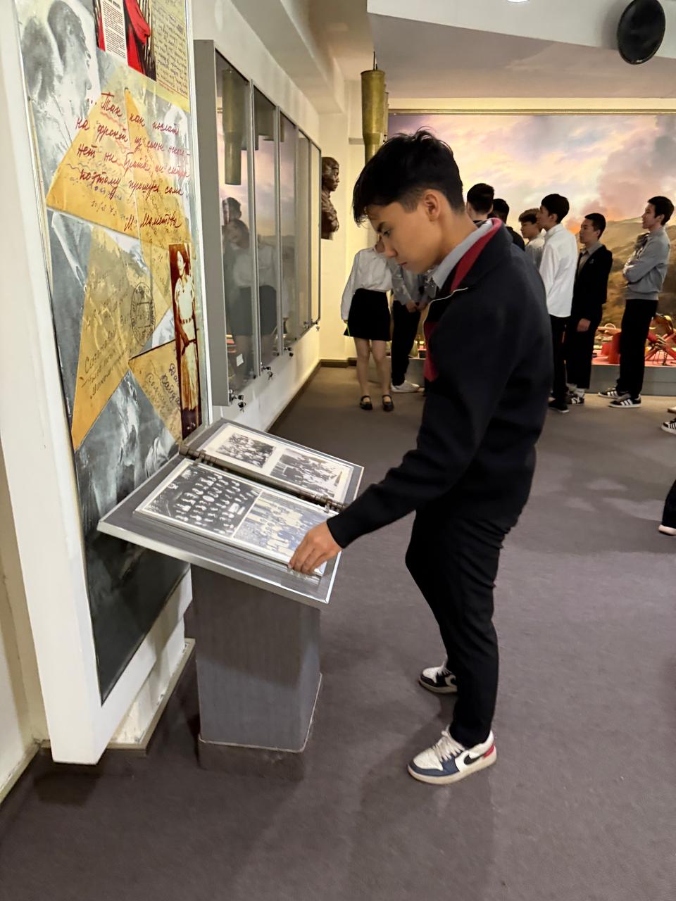 Бұл жай ғана экскурсия емес еді — бұл өткенге саяхат болды, онда тағдырлар, ерліктер, қайғы мен мақтаныш тірі суретке айналды. Студенттер әр залдан өтіп, әрбір экспозицияны көре отырып, бейбіт өмірдің қаншалықты қымбат екенін жүректерімен сезінді. Көпшілігі үнсіз тыңдап, терең ойға шомды, ал кейбіреулері көз жасын әрең ұстады. Өйткені бұл — ортақ тарихымыз, бұл — ұмытылмауы тиіс жадымыз.