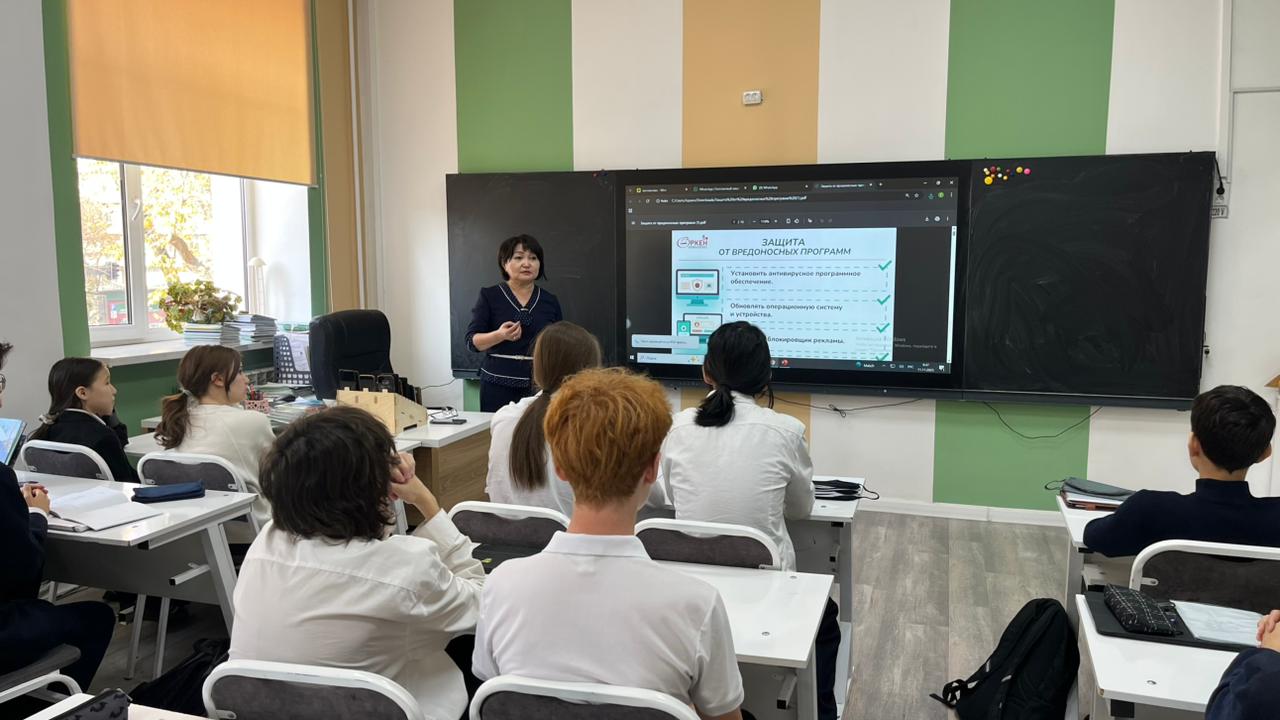 Оқушылар онлайндағы жеке ақпаратты қорғау жолдарын, күмәнді сілтемелерден сақтануды және кибербуллингке қарсы әрекет жасауды үйренді.