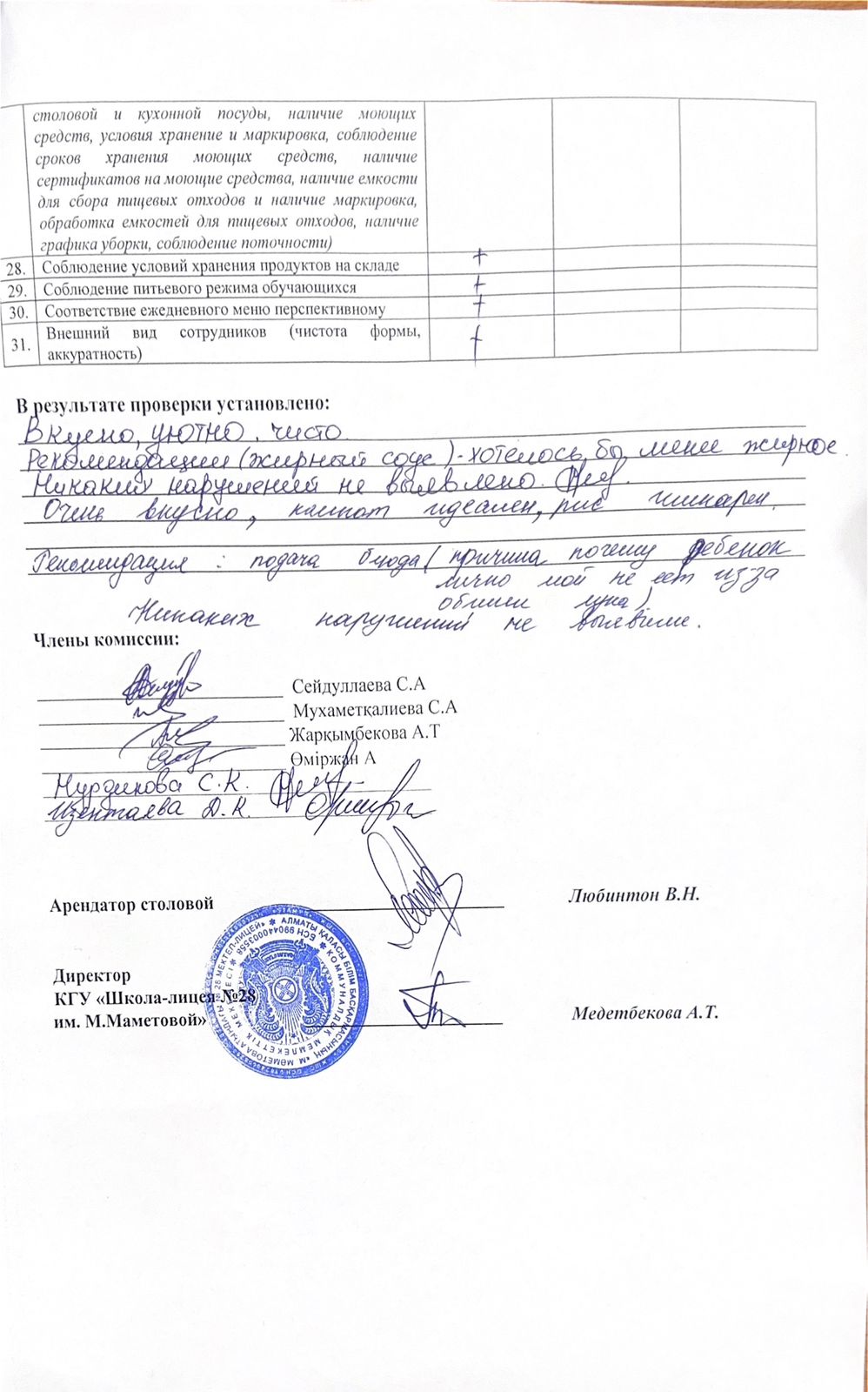 30 қаңтар 2025 0 1 2 3 4 5 № 10 Мектеп асханасын тексеру актісі /Акт №10 проверки школьной столовой мониторинговой комиссией