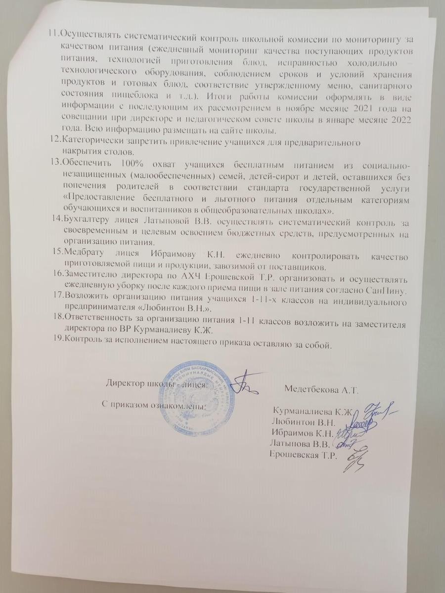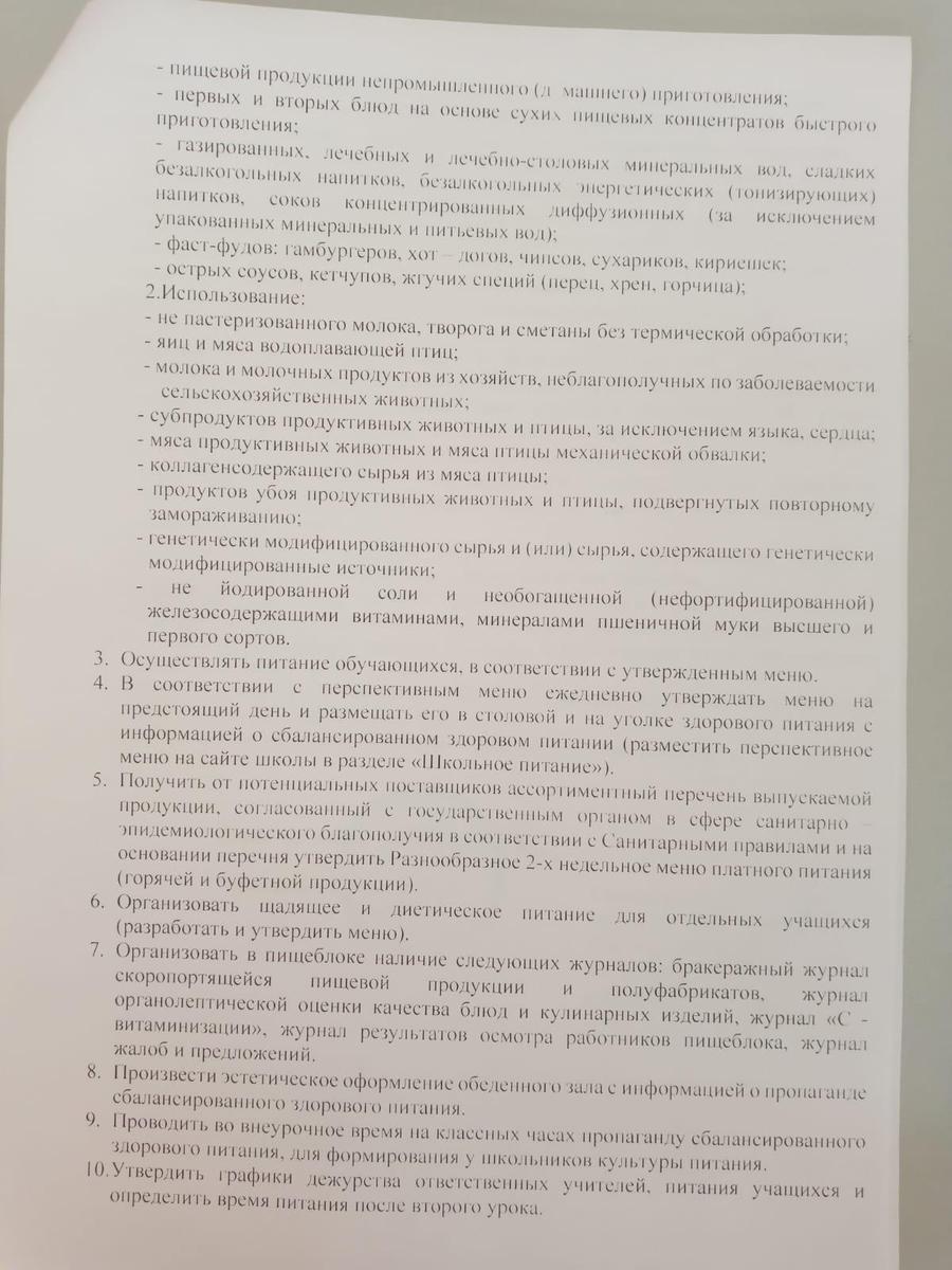 » Приказ ОО "Об организации питания для учащихся"