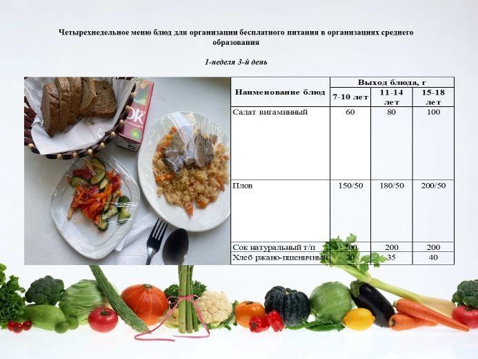 6 қыркүйекке арналған ас мәзірі/контрольное блюдо на 6 сентября